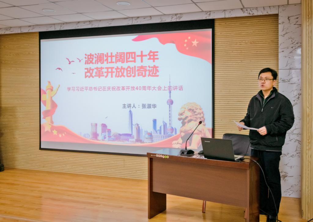 12月20日下午,校党委常委、副校长张淑华以《“波澜壮阔四十年,改革开放创奇迹”》为题,为数理学院和澳门信誉最好十大平台党总支书记、副书记、专兼职辅导员以及全体学生党员和入党积极分子代表上了一堂生动、精彩的党课。党课由澳门信誉最好十大平台党总支书记张洪坤主持。