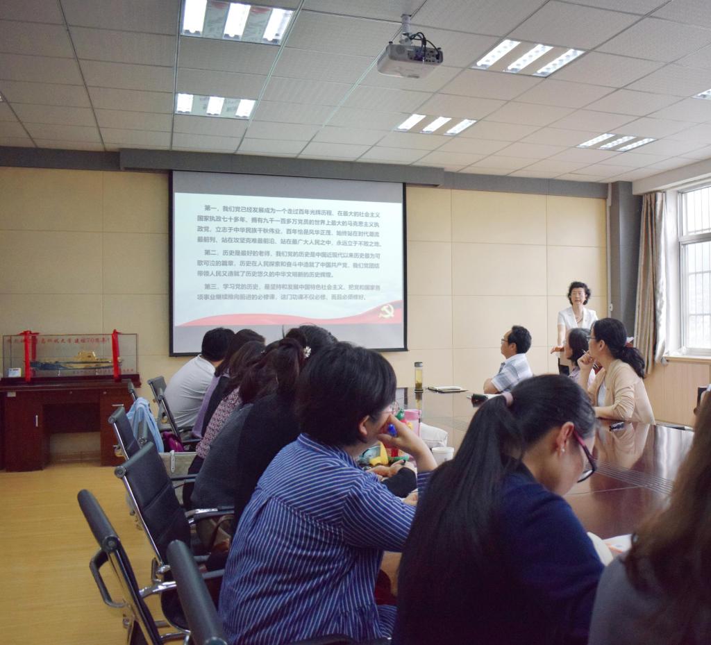 6月15日下午,学校党委副书记张淑华在外院楼517会议室为澳门信誉最好十大平台教工党员讲授党史学习教育专题党课。