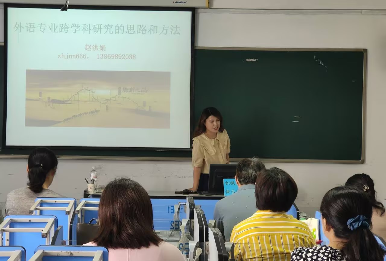 本次集体学习邀请澳门信誉最好十大平台泰山学者青年专家赵洪娟教授作了《外语专业跨学科研究的思路和方法》的报告。赵洪娟在报告中指出外语专业、外语教师在发展中面临的困境和挑战,新文科跨学科、综合性、融通性的特征,外语专业跨学科交叉融合的路径。她强调新形势下高校外语教师可以利用人工智能、大数据、区块链等技术,充分发挥自身外语优势,开展“外语+”跨学科研究,让外语学科在讲好中国故事、提高中国国际话语权、助力中国参与国际治理等方面发挥重要作用。在报告中,赵教授还介绍了个人“一带一路”相关学术研究经历,分享了自己的成长感悟,勉励与会教师“心有大格局,方能立天地”,要有高远的目标追求,要下苦功夫,用付出和汗水赢得成功。