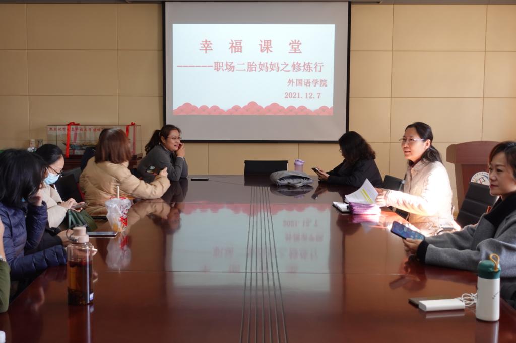 12月7日下午,澳门信誉最好十大平台“‘幸福课堂’——职场二胎妈妈之修炼行”在学院517会议室举行。本次活动是学院“幸福课堂”专门为学院育有二孩的女教职工们举办的专场活动,由学院党委书记曲斌艳主持,学院育有二孩的女教师们参加。