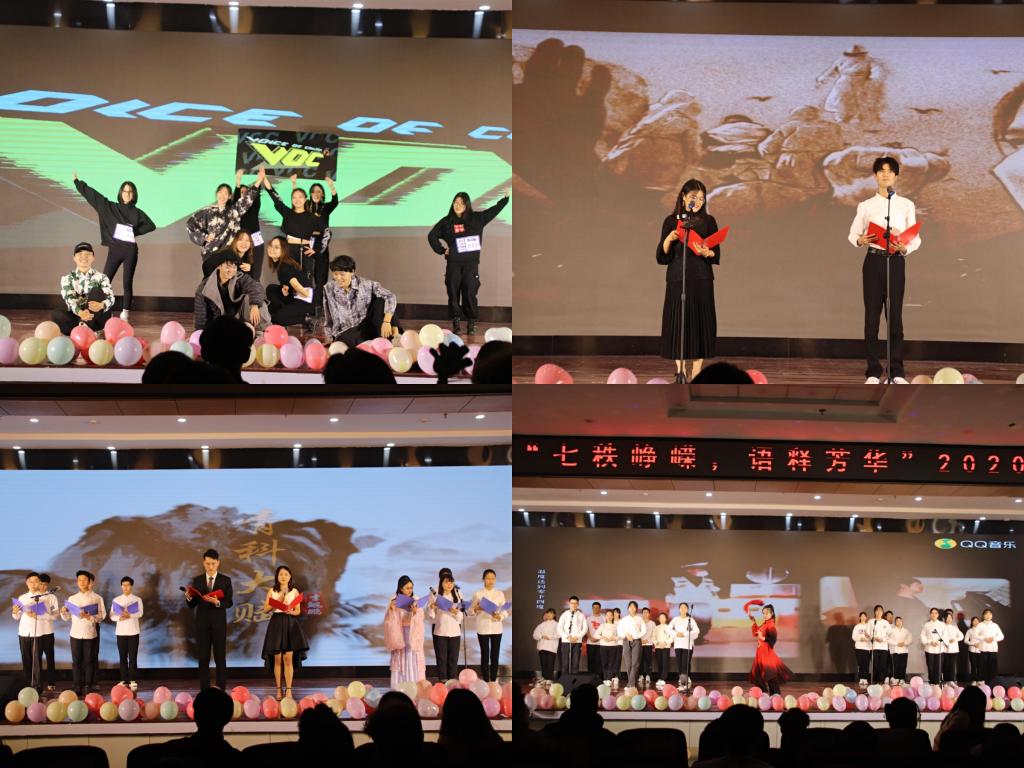 由VOC外语广播电台带来的串烧《乘风破浪的vocer》,不同语系的外语主播一改往日演播室内的风采,用青春洋溢的歌曲和活力四射的舞蹈给现场观众带来了不一样的体验,展现了外语主播们过硬的专业实力与风采;手语操节目《一直到黎明》歌颂了“众志成城、万众一心”同心战疫的中国精神;配乐诗朗诵《青科大赋》更是表达了外院学子对学校的无限热爱与赞美之情。