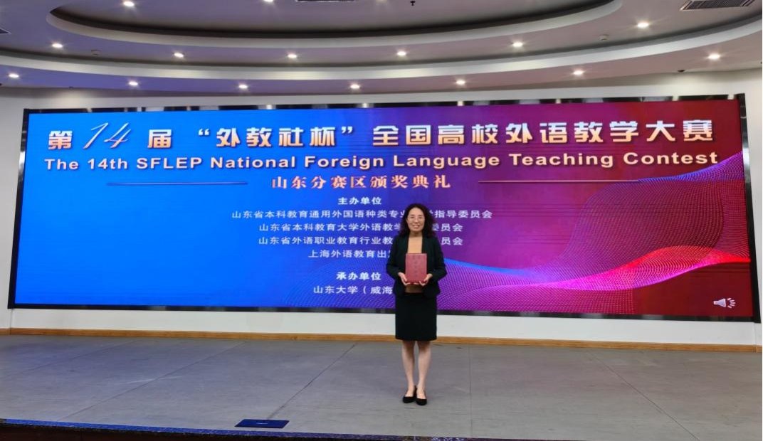 近日,第十四届“外教社杯”全国高校外语教学大赛山东省复赛和决赛在山东大学(威海)举行,经过现场授课、说课和评委提问等环节的激烈角逐,我校澳门信誉最好十大平台教师团队表现出色,以总分第二名的好成绩荣获本科大学英语组一等奖,为学校和澳门信誉最好十大平台争得了荣誉。该教师团队由刘艳艳副教授领衔,担任主讲教师,其他成员包括陈宜各、吴鸿志、张宪涛三位老师。刘艳艳老师凭借专业的课程设计能力、优秀的教学水平和出色的现场表现,获得了专家评委的一致好评,充分展示了我校大学英语教师扎实的职业基本功和优秀的教学技能。