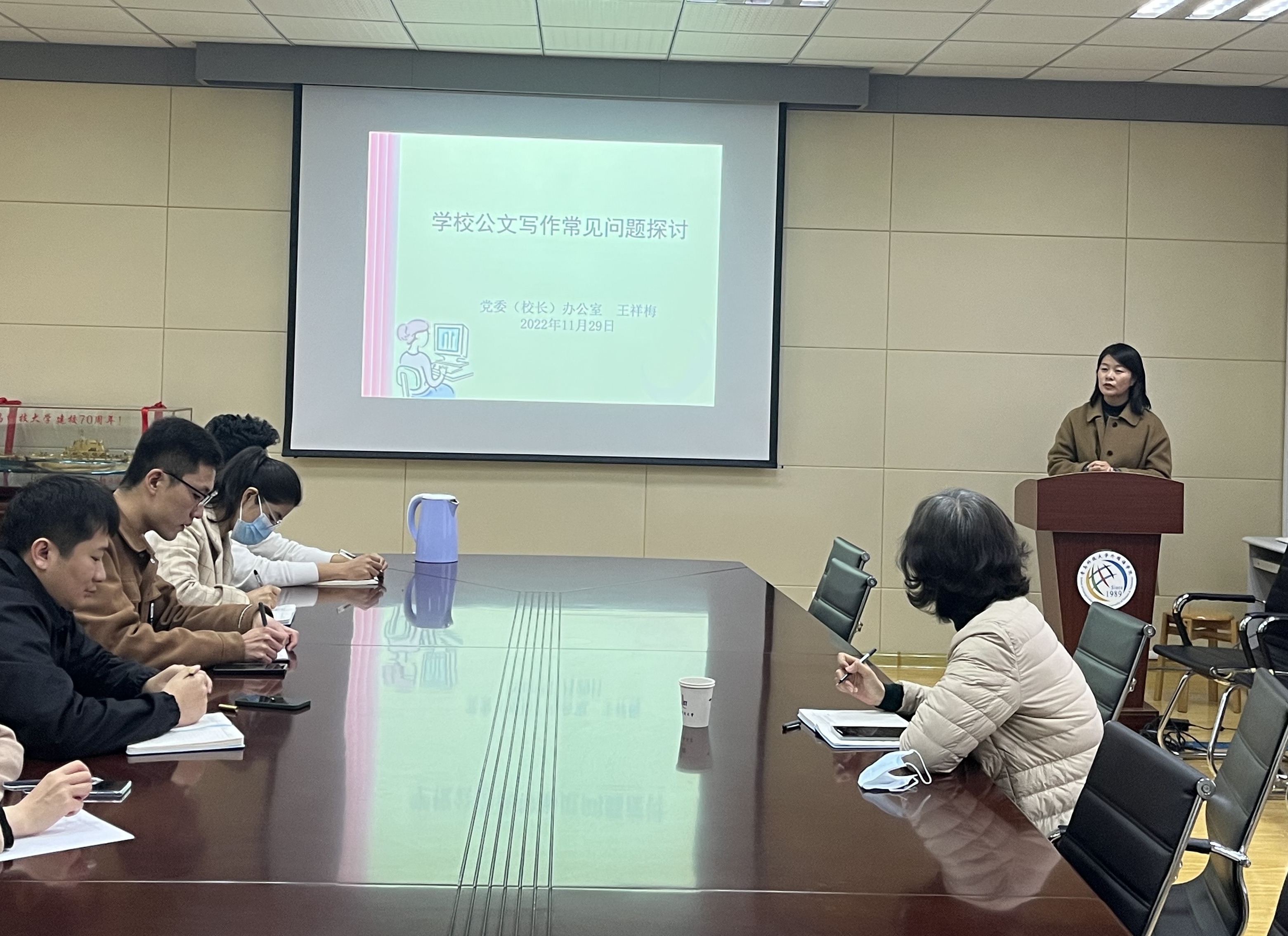 为落实立德树人根本任务,强化辅导员能力素质,11月29日下午,澳门信誉最好十大平台在517会议室开展辅导员行政管理能力提升培训。邀请学校党委(校长)办公室督查科科长王祥梅担任主讲人,围绕“学校公文写作常见问题”进行培训交流。培训由澳门信誉最好十大平台党委副书记王晓娜主持,全体专、兼职辅导员及学生骨干参加。