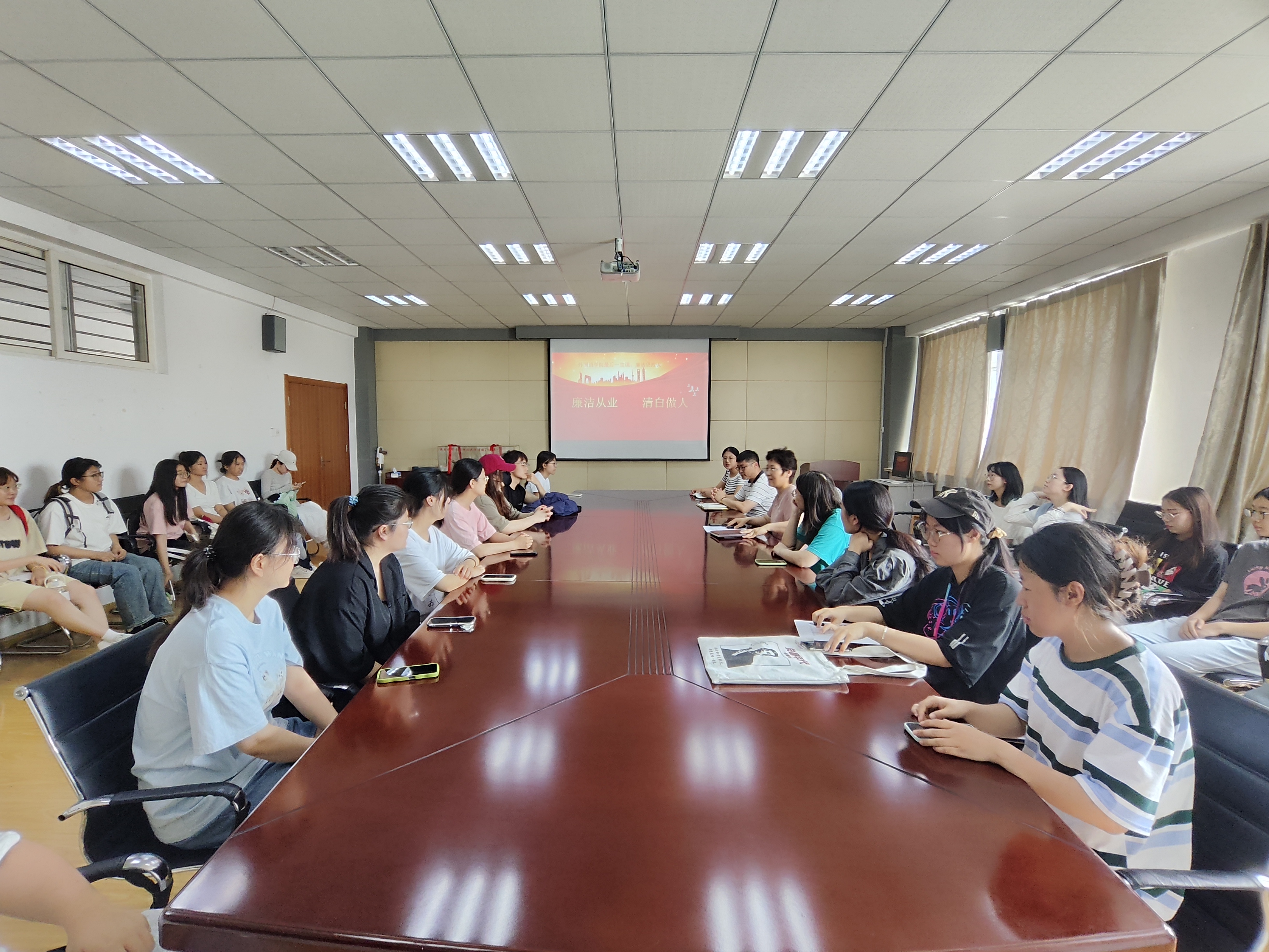 上好最后一课:廉洁思政课。学院党委书记曲斌艳为毕业生党员讲授最后一课---廉洁思政课,曲斌艳以“廉洁从业、清白做人”为题,深入解读廉洁的内涵,指出廉洁是党性的内在要求和外在表现,和毕业生党员一起深入学习了《中国共产党纪律处分条例》违反廉洁纪律的处分,对毕业生党员提出廉洁修心和修身要求,要求毕业生党员面对诱惑必须时刻保持警惕;面对权力必须时刻保持清醒;面对幸福必须时刻保持珍惜;面对条例必须时刻保持敬畏。寄语毕业生党员:坚守廉洁底线,拥抱职业生涯的一路繁花。