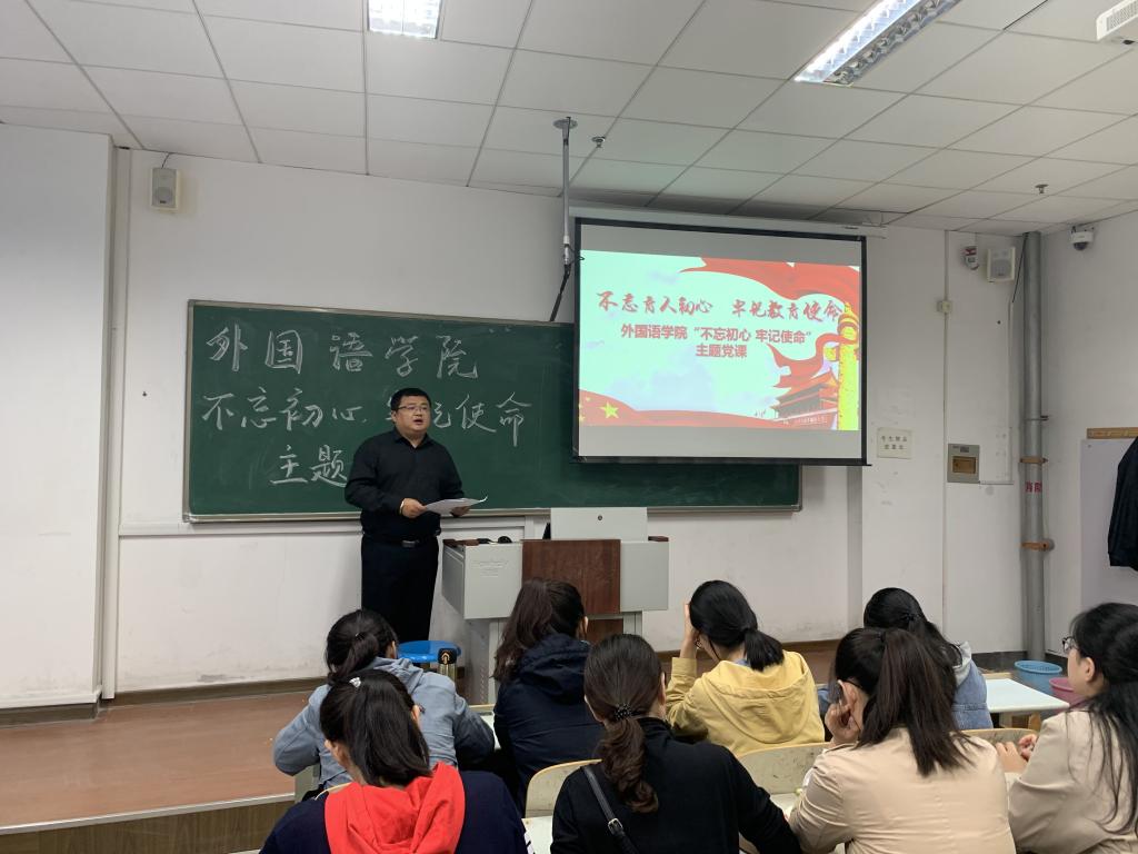 10月22日,澳门信誉最好十大平台于明德楼441教室召开“不忘初心、牢记使命”主题党课活动,澳门信誉最好十大平台党总支副书记宋飞给澳门信誉最好十大平台全体学生党员上了非常有意义的一堂党课。