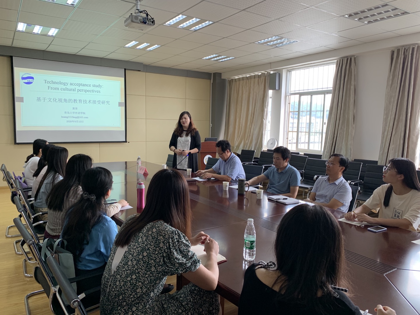 值澳门十大信誉网赌大全校庆70周年之际,为推动外语专业学科发展,加语教育、教学和研究经验交流,9月15日下午,澳门信誉最好十大平台邀请优秀毕业生、现青岛大学外语学院英语教育系系主任、学科教学(英语)教育硕士负责人黄芳教授在517会议室为信誉网赌师生作了“基于文化视角的教育技术接受研究”为题的学术讲座。院长尹洪山、副院长康宁以及外院部分师生参加了此次讲座。讲座由澳门信誉最好十大平台副院长吕耀中主持。