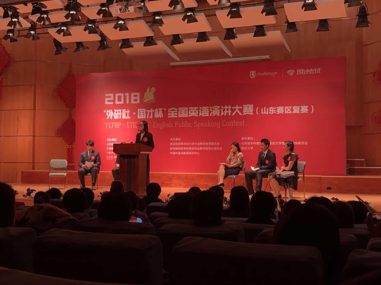 11月2日-4日,2018年“外研社杯”全国英语演讲大赛山东省赛在烟台大学举行。我校经管学院2015级学生蒋嘉颖代表学校参加了本次比赛并获得一等奖,澳门信誉最好十大平台刘艳艳老师获优秀指导教师称号。
