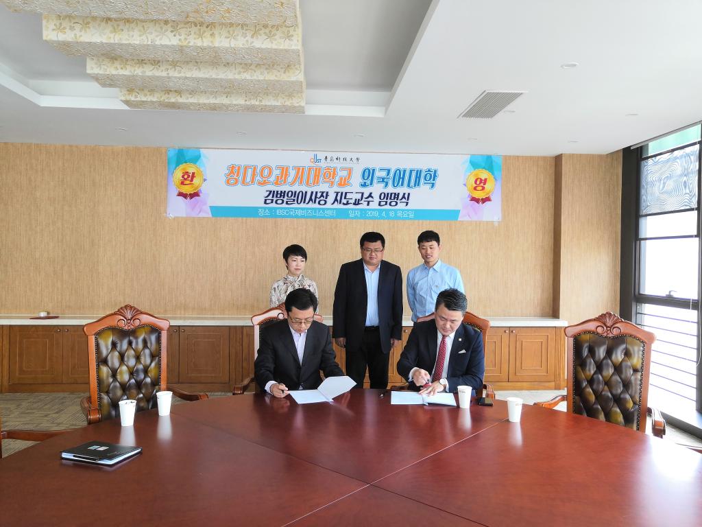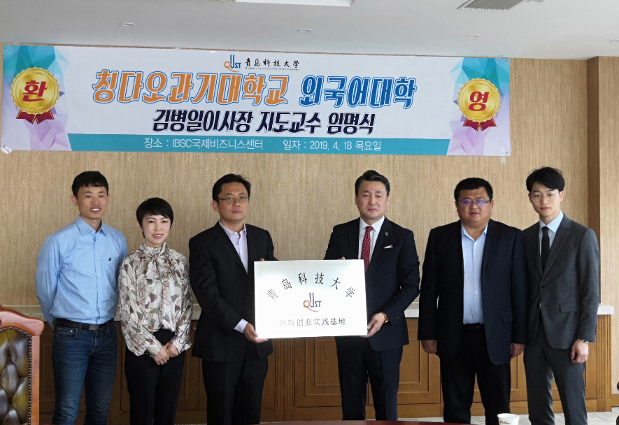为贯彻落实学校教育思想大讨论动员部署大会相关要求,不断推进创新创业工作,4月18日,澳门十大信誉网赌大全与国际商务服务中心共建“创新创业实践基地”签约及揭牌仪式在国际商务服务中心举行。国际商务服务中心理事长、青岛外商投资企业协会韩国投资企业分会城阳区即墨市支会会长金炳一,澳门信誉最好十大平台党总支书记张洪坤、党总支副书记宋飞及相关项目负责人参加了仪式。