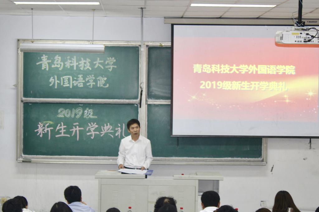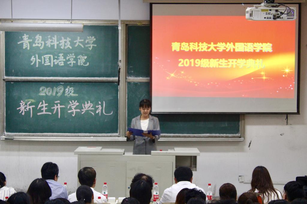 在举国上下喜迎新中国成立70周年之际,9月25日,澳门信誉最好十大平台2019级新生开学典礼于在弘毅楼E102隆重举行。澳门信誉最好十大平台院长尹洪山,副院长任素贞、吕耀中,党总支副书记兼副院长宋飞,英语系主任杨晓梅,日语系主任王宁,俄语系主任曹静娴,韩语系老师毕信燕,德语系主任崔婕以及分团委副书记辛婷婷出席了本次开学典礼。开学典礼由分团委老师王雨昕主持。