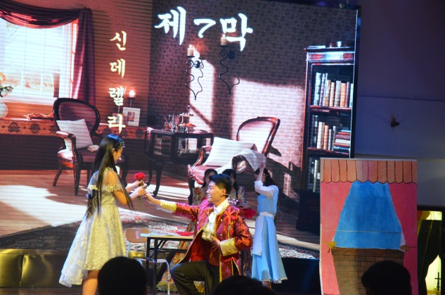 我系在本次大赛中凭借剧目<왕자없는신-데렐라>(没有王子的灰姑娘)获得了团体三等奖的佳绩。该剧目讲述了脾气暴躁的灰姑娘为参加王子举行的舞会而引发的一连串啼笑皆非的故事。灰姑娘误打误撞地拦截了人鱼公主的精灵,又误打误撞地抢走了白雪公主的王子。经典的童话人物,新颖的故事情节,同学们的精湛演技,三者碰撞出的火花塑造了精彩的演出效果。