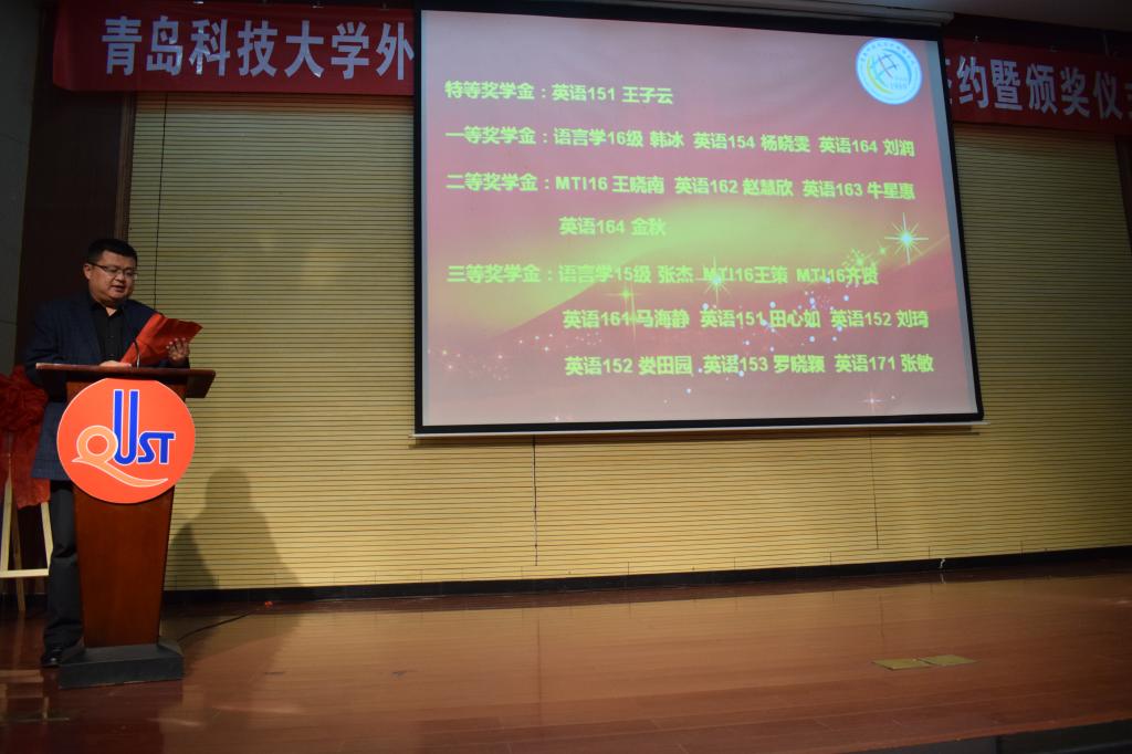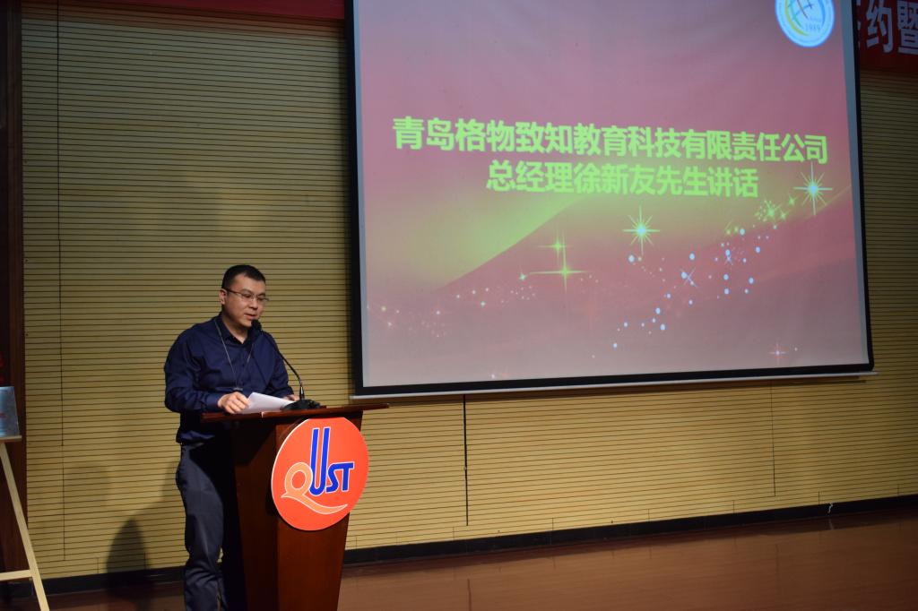 5月4日下午,澳门信誉最好十大平台“格物致知奖学金”签约暨颁奖仪式在第一报告厅举行。青岛格物致知教育科技有限责任公司总经理徐新友、教研总监马晓燕以及总经理助理郭晓冬,校教育发展基金会秘书长、校友工作办公室主任聂广明,澳门信誉最好十大平台党政负责人尹洪山、姜德杰、任素贞、康宁、宋飞参加了本次活动。