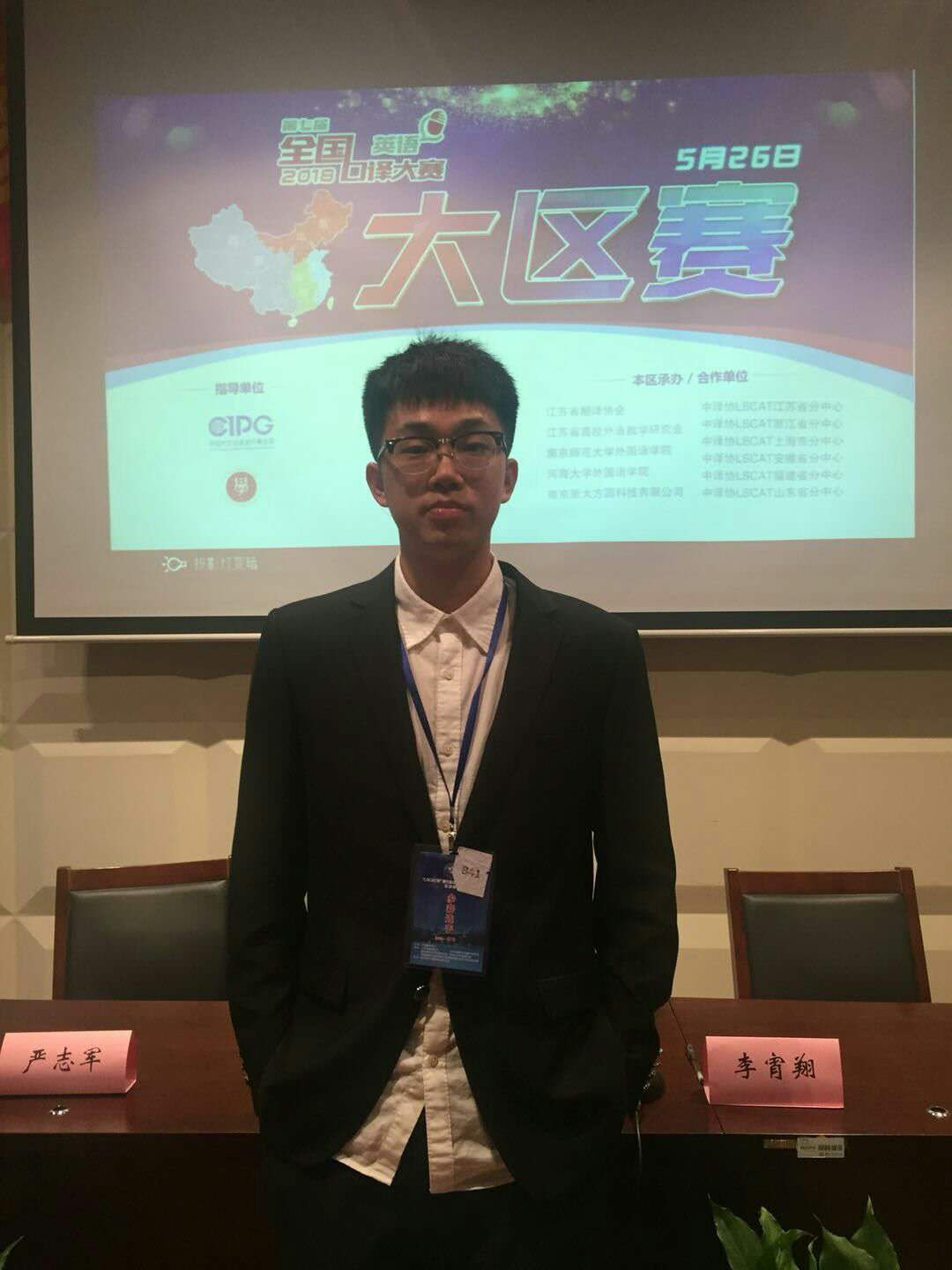 5月26日,第七届全国口译大赛华东大区赛在南京师范大学随园校区举行,青科大学子张浩然在此次大赛中取得佳绩,获得华东大区赛三等奖。