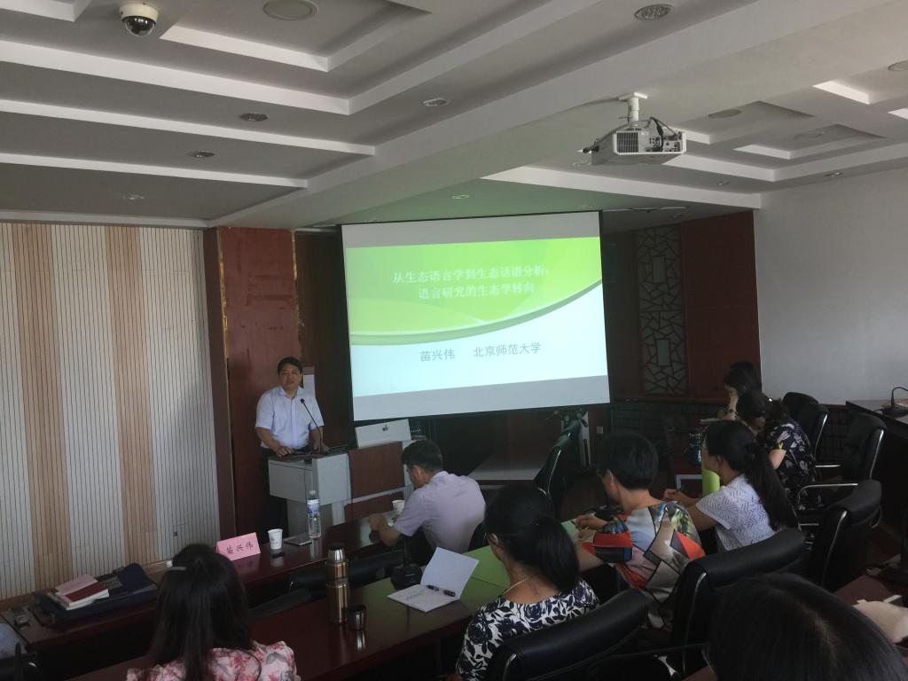 9月7日下午,北京师范大学外文学院博士生导师苗兴伟教授应邀来信誉网赌进行学术交流,在经管楼511会议室做了一场题目为“从生态语言学到生态话语分析:语言研究的生态转向”的学术报告。报告会由澳门信誉最好十大平台院长尹洪山主持,副院长康宁以及外语学院的部分教师与学生参加了这次讲座及交流。