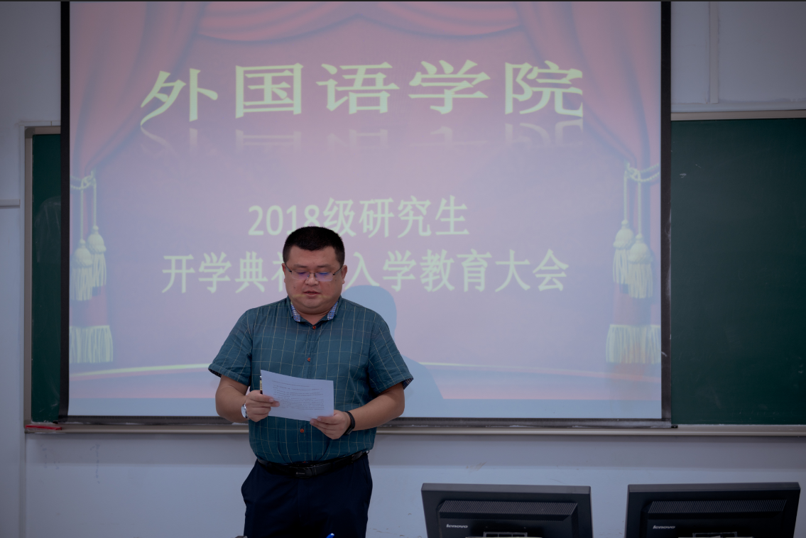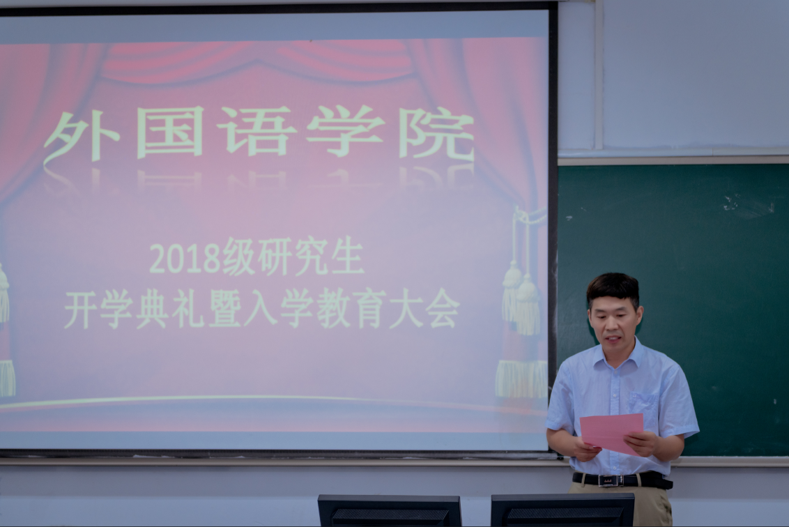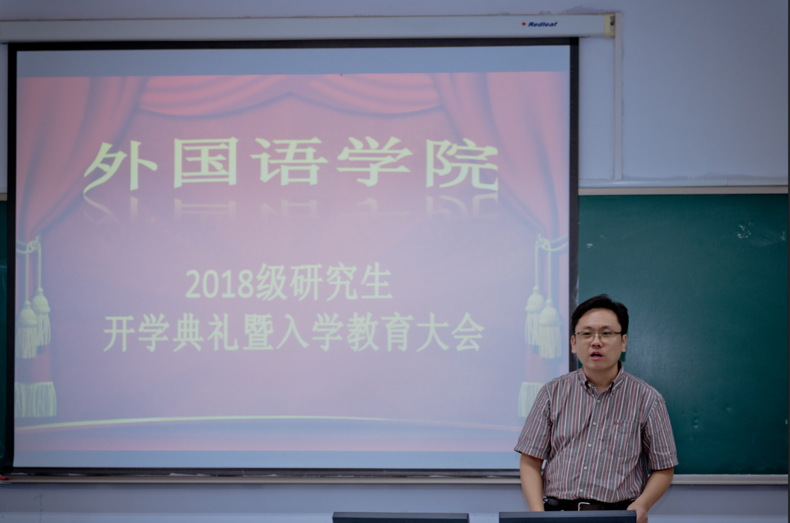 9月14日上午,澳门信誉最好十大平台2018级研究生开学典礼在外语楼418举行。澳门信誉最好十大平台院长尹洪山、党总支书记张洪坤、副院长康宁、党总支副书记兼副院长宋飞、各教研室主任以及全体2018级研究生出席开学典礼。开学典礼由宋飞主持。