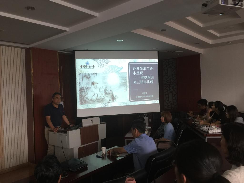 9月18日下午,我校人文社科讲堂在崂山校区经管楼511报告厅开讲,本次讲堂由澳门信誉最好十大平台主办,邀请中国海洋大学博士生导师任东升教授为师生做了一场“译者显形与译本呈现”的报告。报告会由院长尹洪山主持,副院长康宁及部分师生参加了报告会。