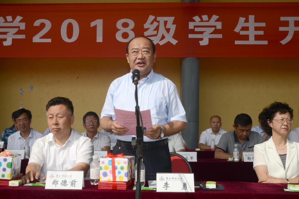 大会在庄严雄壮的国歌声中开幕。党委书记、校长马连湘发表了热情洋溢的讲话,向走进青科大的2018级新同学表示热烈欢迎,向为学校输送优秀生源的中学教师和精心哺育学生成长的家长表示衷心感谢,向帮助、指导、组织学校军训工作的中国人民解放军92038部队的领导和教官们表示崇高的敬意。