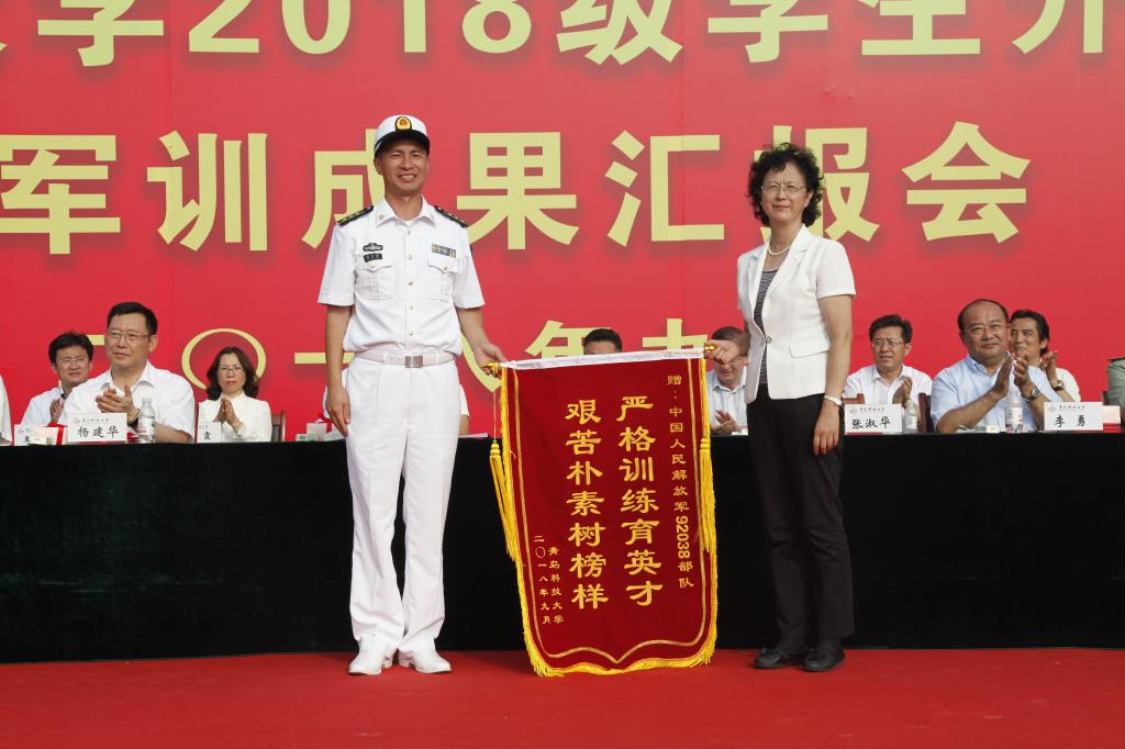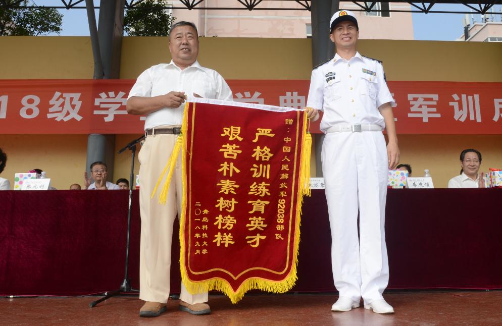 党委副书记张元利、副校长张淑华代表学校向92038部队赠送锦旗,副校长李勇在典礼上宣读了《澳门十大信誉网赌大全关于表彰2018级学生军训先进集体和优秀教官的决定》《澳门十大信誉网赌大全关于颁发2018年优秀新生奖学金的决定》。获奖的军训先进营、内务先进营、军训先进连、优秀教官代表,以及优秀政治教导员上台领奖。53名新生领取了新生奖学金,其中普通本科生29人每人奖励5000元,中德合作办学项目23人每人奖励30000元、中法合作办学项目1人奖励20000元。