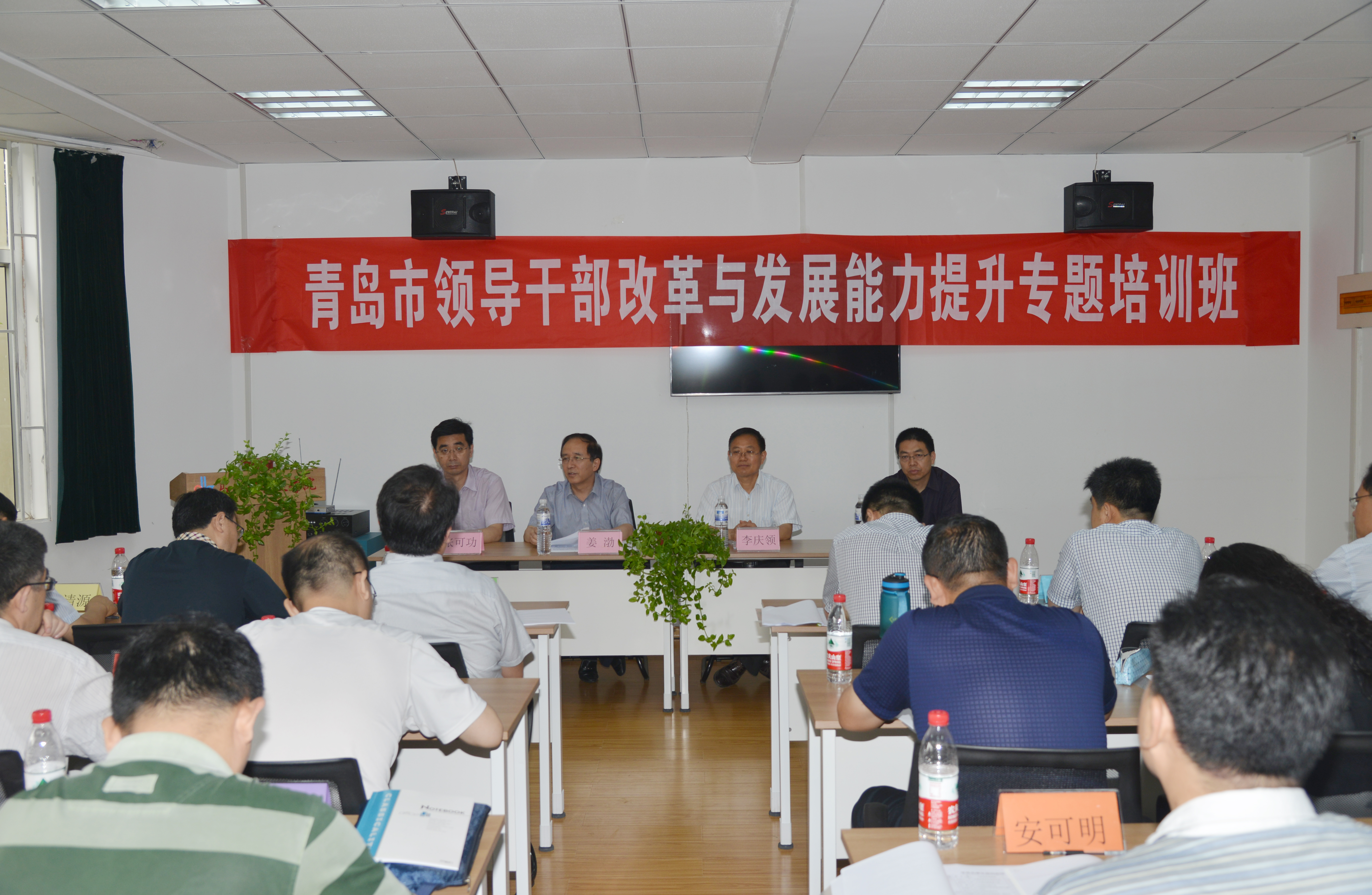 6月20日上午,青岛市领导干部改革与发展能力提升专题培训班开班仪式在我校澳门信誉最好十大平台举行。青岛市委组织部副部长、市委老干部局局长姜渤,学校党委常委、副校长李庆领出席开班式并讲话,青岛市委组织部干部教育处处长张可功、学校党委组织部部长吕万翔等出席,来自青岛市各区市、机关部局的参训学员和学院选派的培训教师参加了开班式。开班式由澳门信誉最好十大平台姜德杰院长主持。
