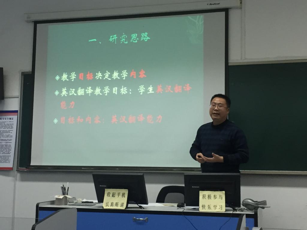 12月20日14时30分,山东大学(威海)翻译学院博士生导师薄振杰教授应邀做客澳门信誉最好十大平台研究生论坛,在语音室418做了题为“英汉翻译教学探索—目标与内容”的报告。报告由吕耀中副院长主持,姜德杰书记,尹洪山院长,任素贞副院长,翻译硕士教育中心主任康宁及学院部分师生到场参加。