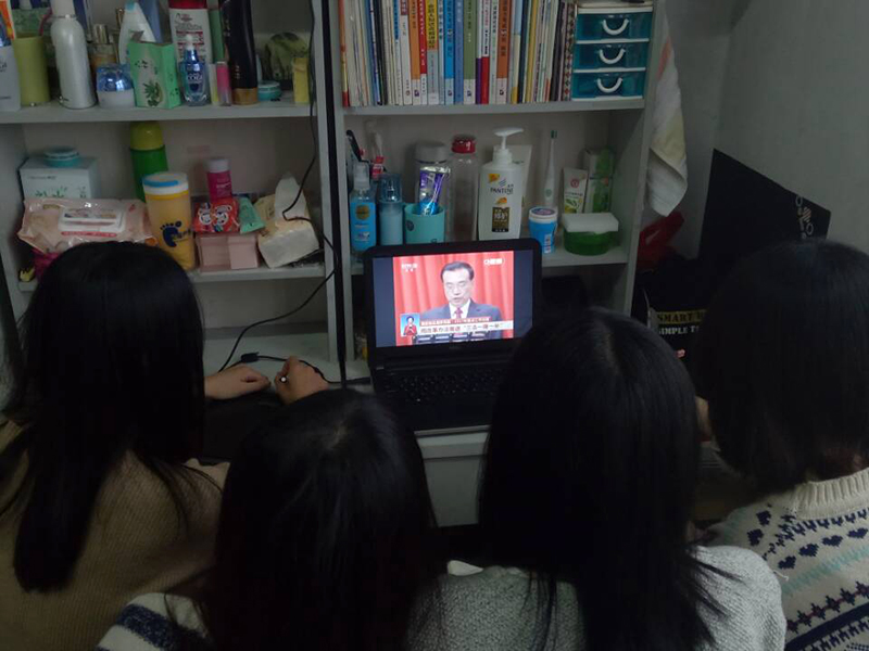 3月5日上午,十二届全国人大五次会议在北京召开,澳门信誉最好十大平台师生自发组织收看了十二届全国人大五次会议盛况,听取了李克强总理关于政府工作的报告。