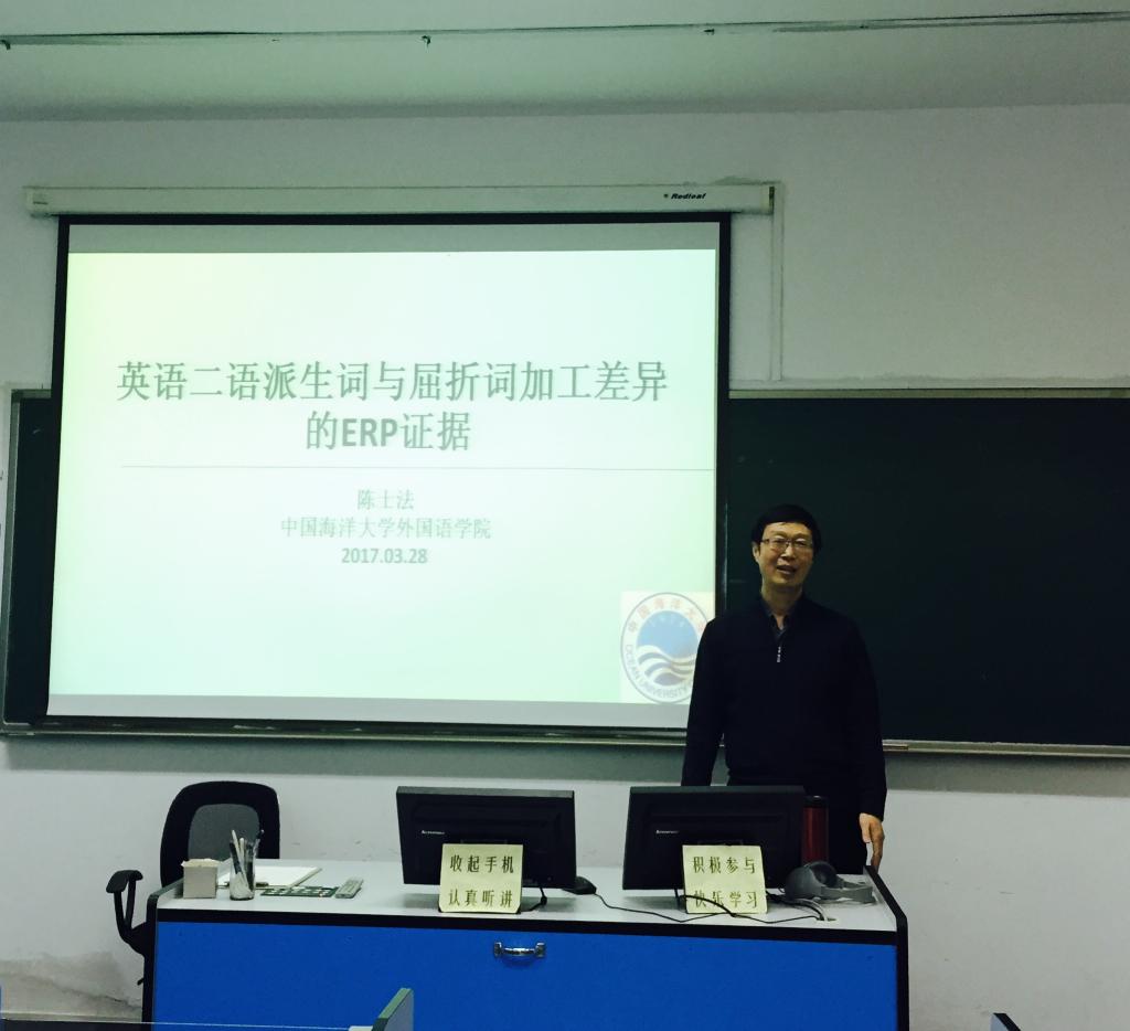 3月28日下午,中国海洋大学澳门信誉最好十大平台教授、硕士研究生导师陈士法教授应邀来信誉网赌作报告。报告主题为“英语二语派生词与屈折词加工差异的ERP证据”。报告会由副院长吕耀中主持,院长尹洪山及学院部分师生参加了此次报告会。