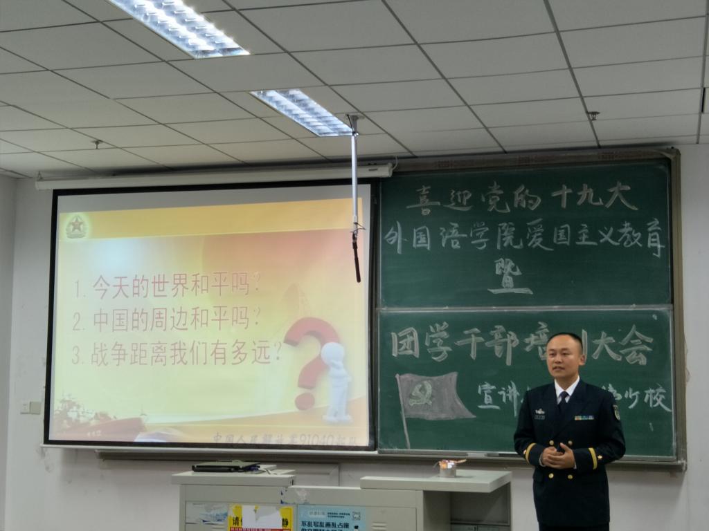 一是开展一次爱国主义专题讲座活动。10月18日下午,澳门信誉最好十大平台在弘毅522召开了“喜迎党的十九大——澳门信誉最好十大平台爱国主义教育暨团学干部培训大会”,邀请了驻青海军史书伟少校为全院学生干部、党员、入党积极分子做了题为《中国的战略环境》专题报告。会上,史少校从“今天的世界和平吗?中国的周边和平吗?战争离我们有多远?”三个问题入手,分析了我国目前面临的战略环境,并与参会同学共同探讨了南海问题、朝核问题、中日关系、中美关系,希望同学们能够好好学习,不负光阴,为祖国的繁荣昌盛贡献自己的力量。
