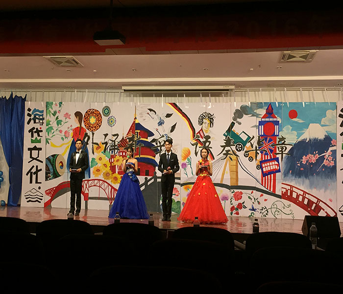 晚会以一部青春洋溢,独具匠心的短片拉开了序幕。开场舞《鼓舞青春》,银色灯光下舞者们活力四射的表演成功调动了现场气氛,演员们用热情奔放的舞姿让现场观众领略了舞蹈的独特魅力。扇子舞《青花瓷》用现代的表现方式展现了传统艺术的风采。老师们用中、英、德、韩、日、俄六种语言朗诵的《再别康桥》,用外语学院特有的方式向大家演绎了这一经典,展现了语言的魅力。《想把我唱给你听》《我心永恒》《同桌的你》《Titanium》等一首首动听的歌曲音乐,时而如涓涓细流般浅吟低唱,时而如熊熊烈火般热情洋溢,同学们的情绪也随着音乐而律动,扫走了冬季的寒意。姜德杰院长表演的魔术,精彩绝伦,掀起了晚会的高潮。分团委书记赵含老师的女儿通过电子琴独奏《步步高》,为16级的新生们送上了祝福。除此之外,舞蹈《BOOMBAYAH》、歌舞剧《歌舞青春》等节目也为大家带来了一场视听盛宴。小品《祝你幸福》等节目将晚会推向了一个又一个的高潮。最后本场晚会在韩语系外教及同学的大合唱《我爱你》中落下帷幕。