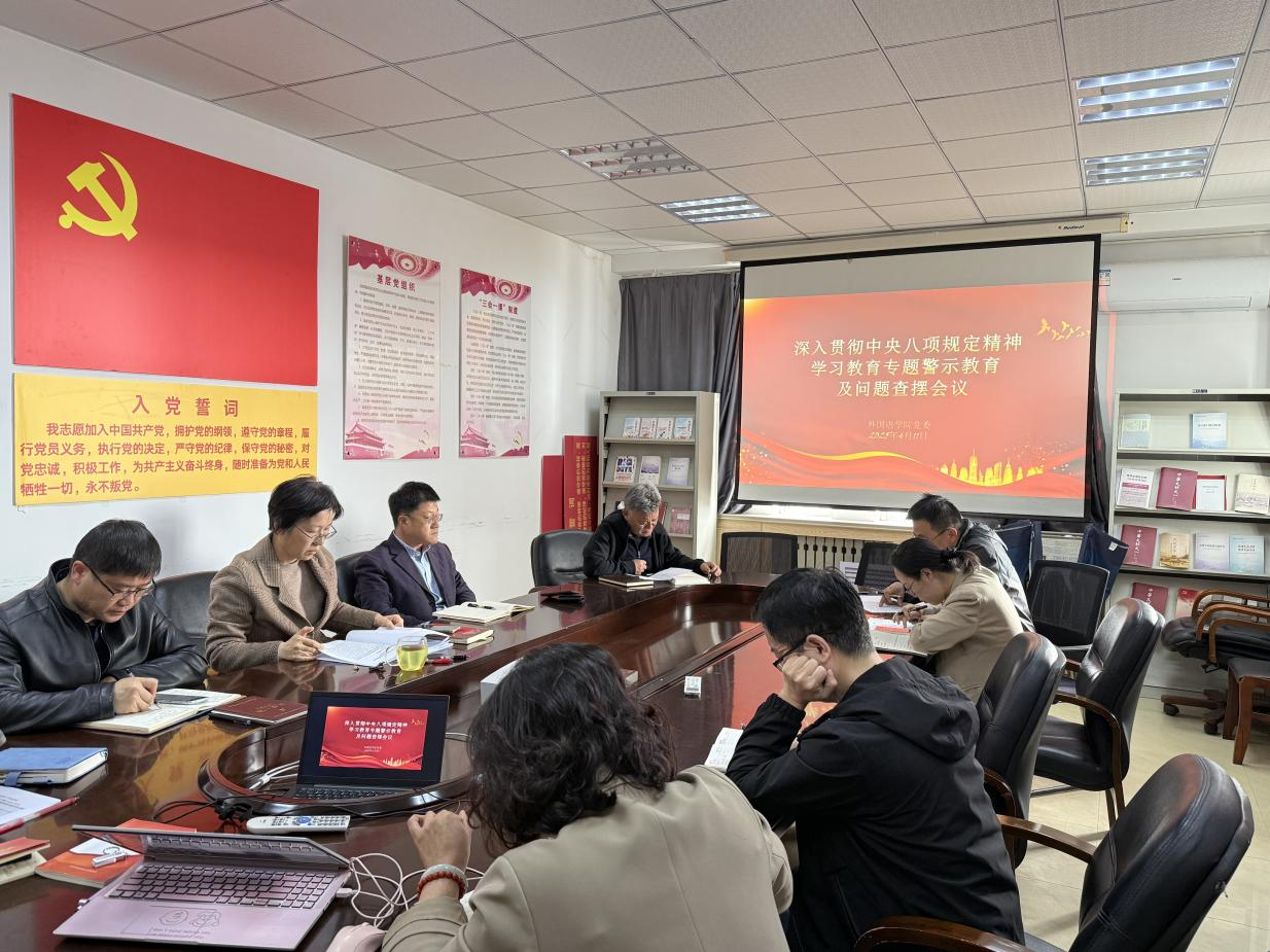 会上,与会人员集体深入学习了违反中央八项规定及其实施细则精神的问题,分别领学了警示教育典型案例,并对照违反中央八项规定及其细则精神问题深入查摆了学院及领导干部在作风方面存在的问题,汇总形成学院作风问题清单,明确了今后整改措施和整改时限。