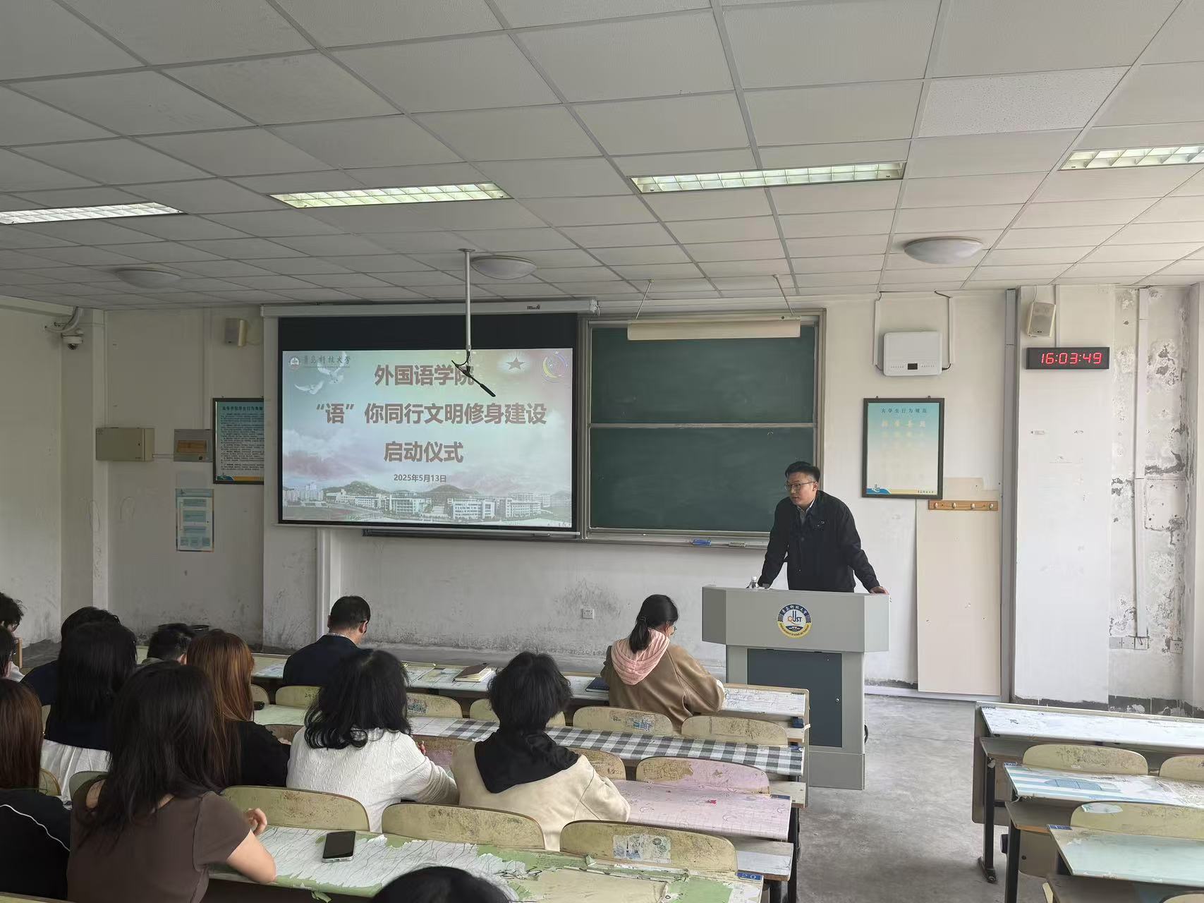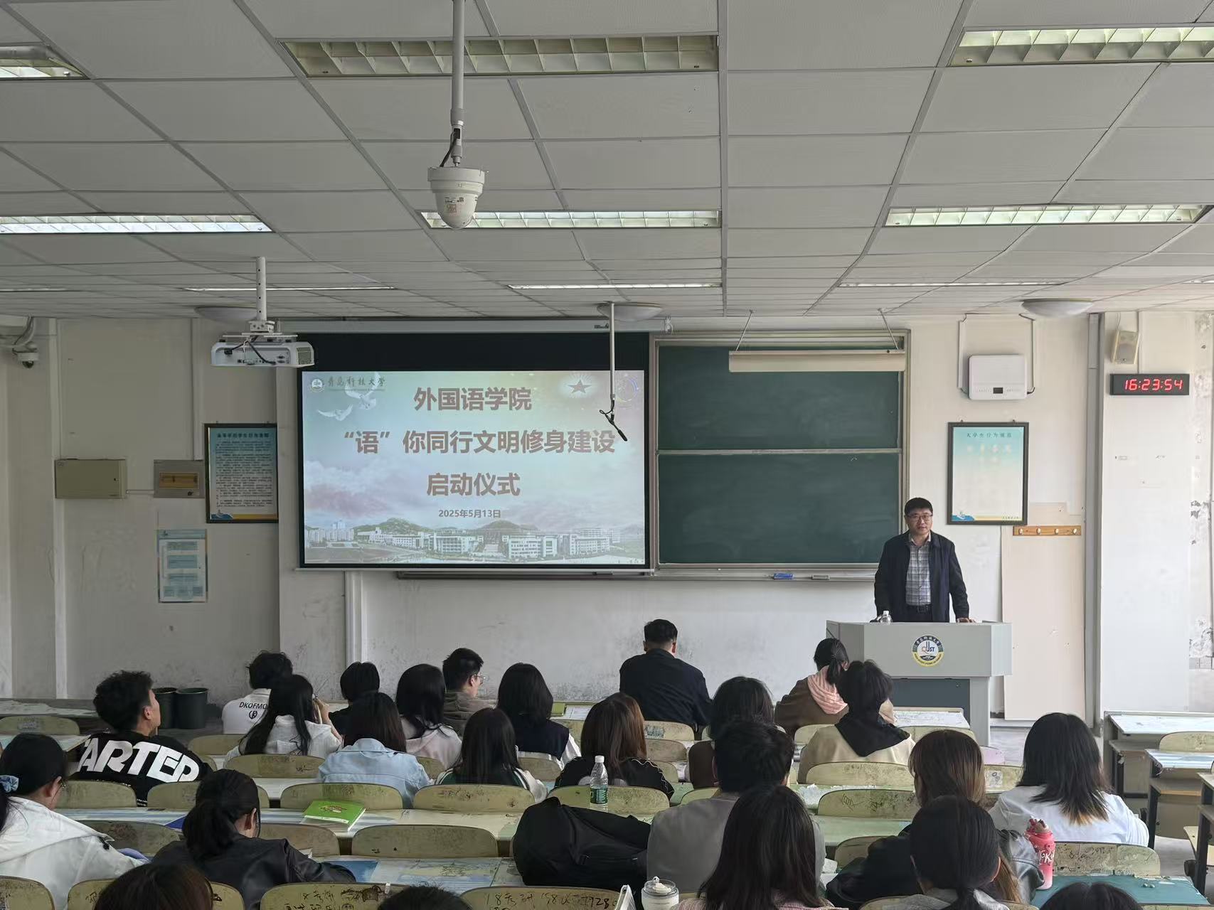 为深入贯彻落实立德树人根本任务,推进“三全育人”走深走实,澳门信誉最好十大平台于5月13日启动“语”你同行文明修身建设,学院党委副书记兼副院长马寒、团委副书记兼学工办副主任王玉凯、辅导员马昆及学生代表参加活动。