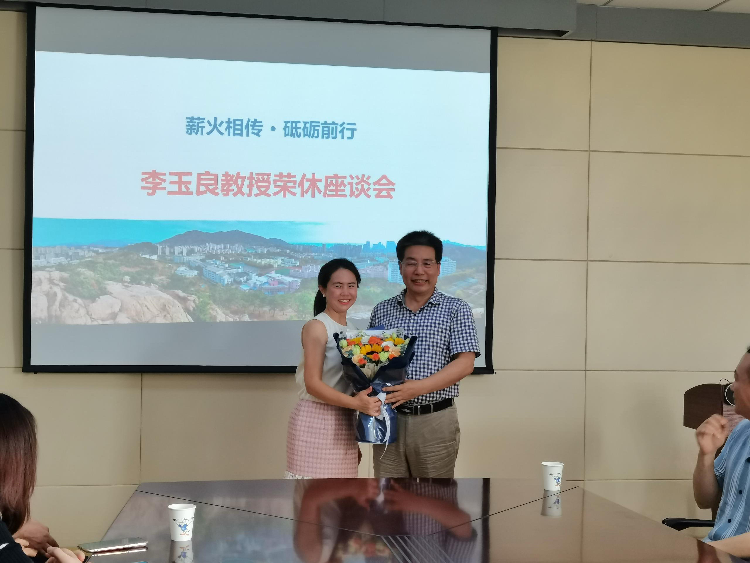 7月8日下午,澳门信誉最好十大平台为李玉良教授举办以“薪火相传·砥砺前行”为主题的荣休座谈会。学院领导班子成员、各系部负责人及教师代表齐聚一堂,共同向为学院发展奉献多年的李玉良教授表达诚挚敬意与美好祝福。