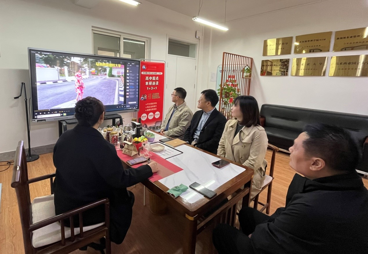 在趣优学教育公司,董事长赵云接待了学院一行,双方围绕校企合作、人才培养等议题展开深入交流。王灏介绍了信誉网赌学科发展和毕业生就业等情况。赵云女士介绍了企业发展和人才需求的基本情况,对语言专业学生培养提出建议。同时她还期望与外院合作,通过海外实习或游学项目,提高学生综合素质和求职竞争力,助力外院学生高质量就业。