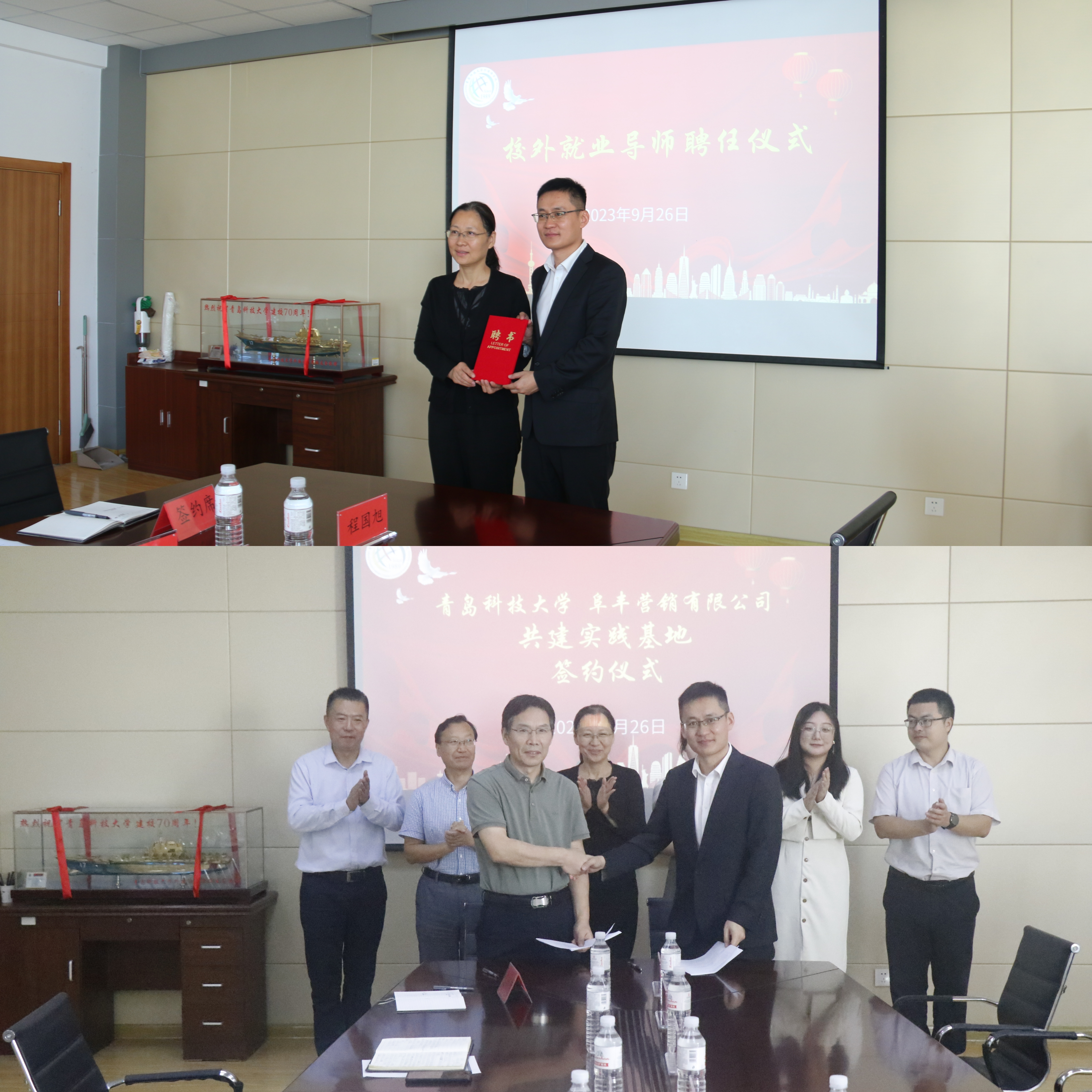 为推动双方更加深入开展合作交流,座谈会上澳门信誉最好十大平台聘请阜丰集团营销总公司全球人力资源总监夏龙飞为学院校外就业导师,并和阜丰营销有限公司签订共建实习实践基地框架协议。