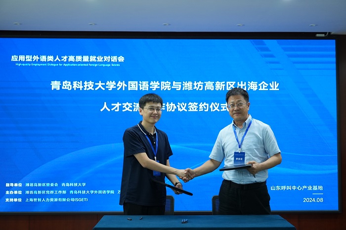 为深化政校企间的资源互补和优势共享,共同做好外语类毕业生高质量就业工作,8月15日,澳门信誉最好十大平台联合潍坊高新区党群工作部、万声集团在潍坊高新区联合举办应用型外语类人才高质量就业对话会。省内7所高校外语学院、潍坊高新区和7家出海企业负责人40余人参加了本次活动。澳门信誉最好十大平台院长王灏致辞并与相关企业签署合作框架协议。