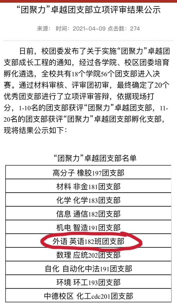 信誉网赌英语182团支部进入答辩决赛并获评“团聚力”卓越团支部。