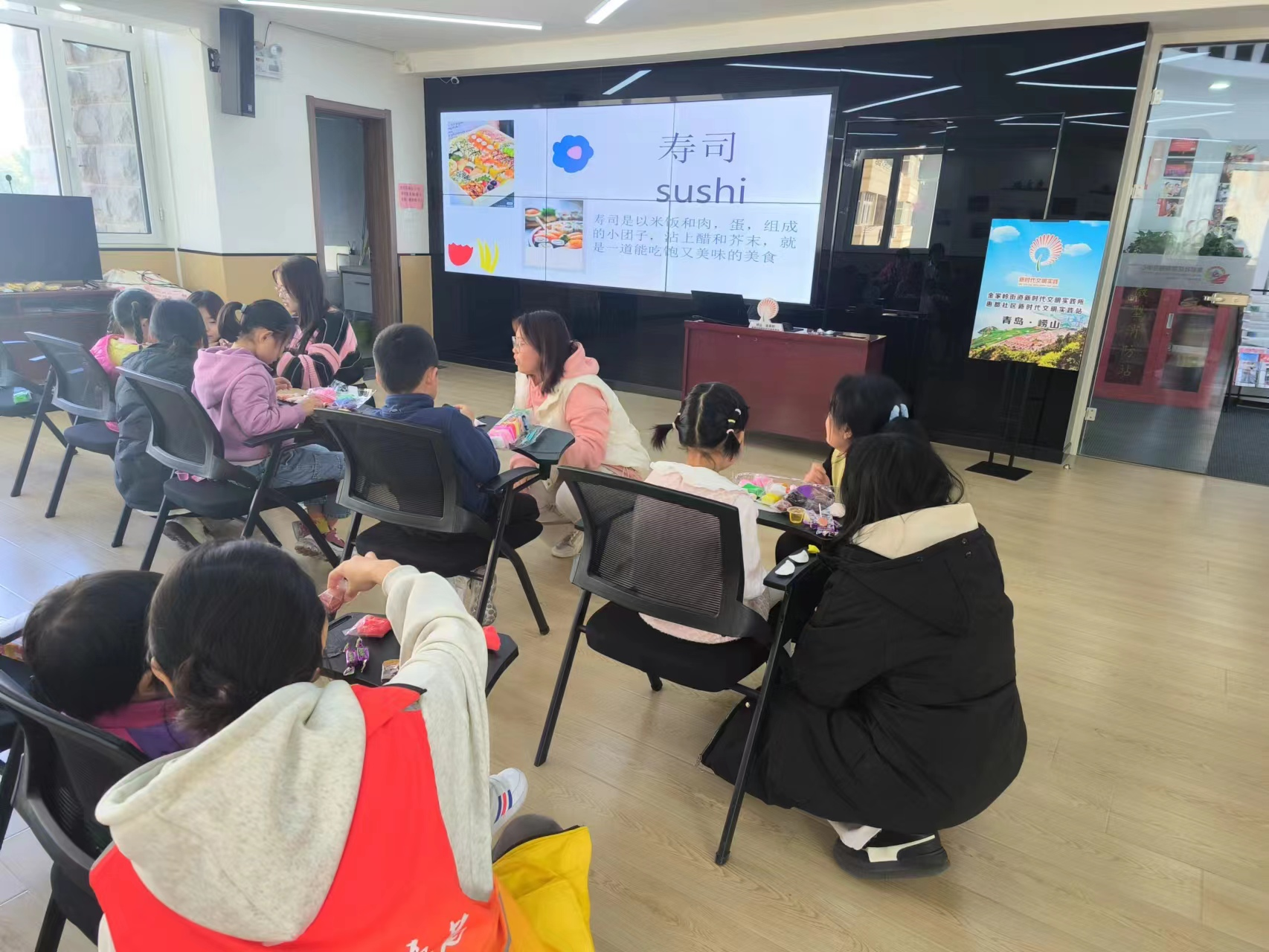 在本次活动中,来自英语231班团支部的志愿者们用生动的语言、可爱的动画、有趣的小游戏向小朋友们分别介绍了来自俄罗斯、意大利、法国和日本的特色美食,并与中国传统美食进行对比,让小朋友们既能体验不同国家丰富多彩的饮食文化,又能感受中国传统美食的魅力。