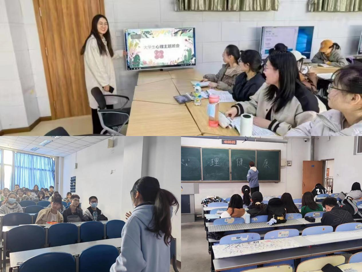 在班会活动中,各班班长及心理委员自行组织心理健康主题班会,通过交流彼此间遇到的困难小事来减轻同学们的心理压力,使其学习如何正确面对与处理生活中的不愉快事件,以及如何用正确的方式进行心理调适等知识。