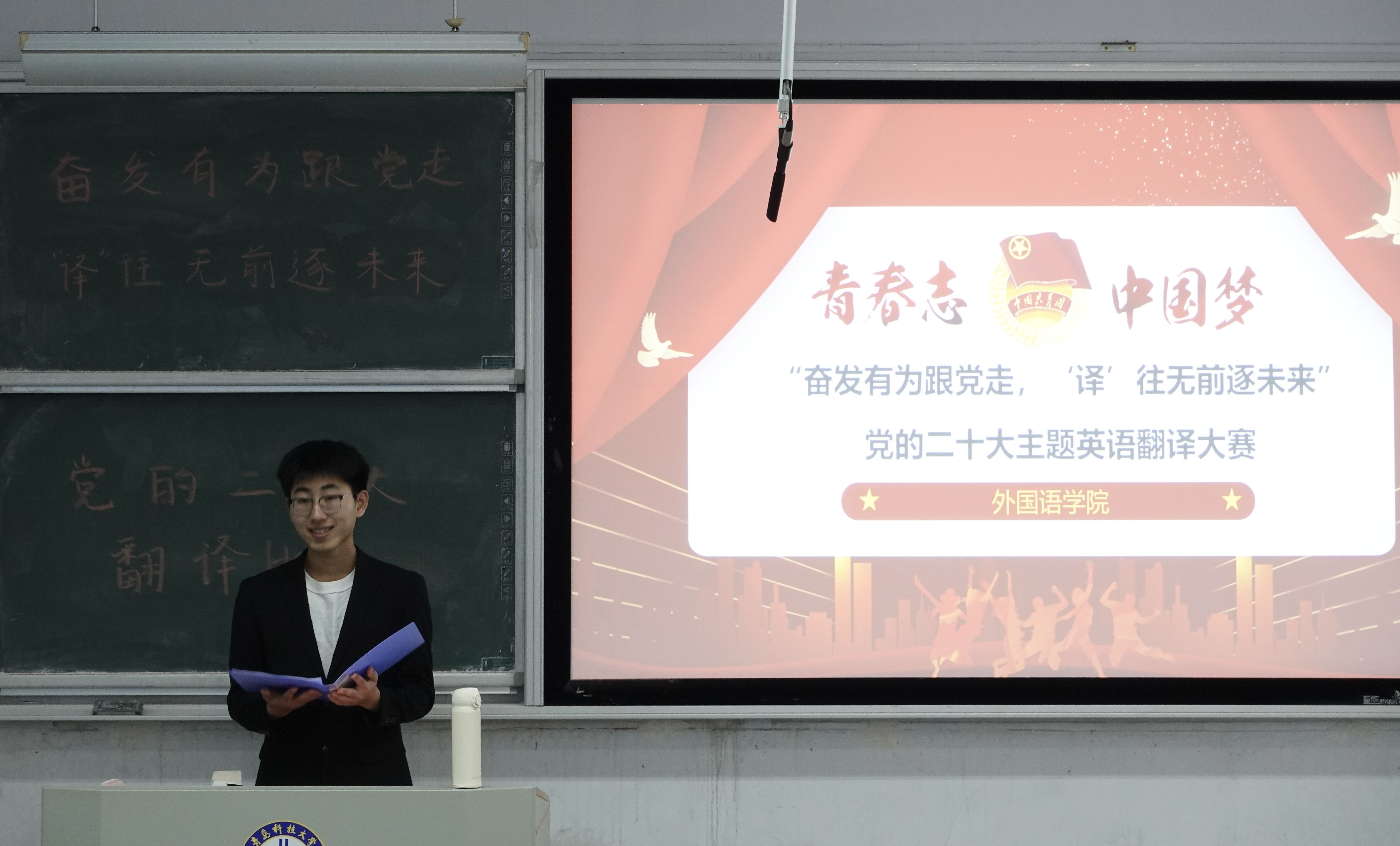 为了学习贯彻党的二十大精神,更好地通过英语向世界讲好中国故事,传播中国声音,展现英语独特的语言魅力和外院学子的精神风貌,澳门信誉最好十大平台于12月6日下午2:30在弘毅楼E105教室举办了“奋发有为跟党走,‘译’往无前逐未来”党的二十大主题英文翻译大赛活动。