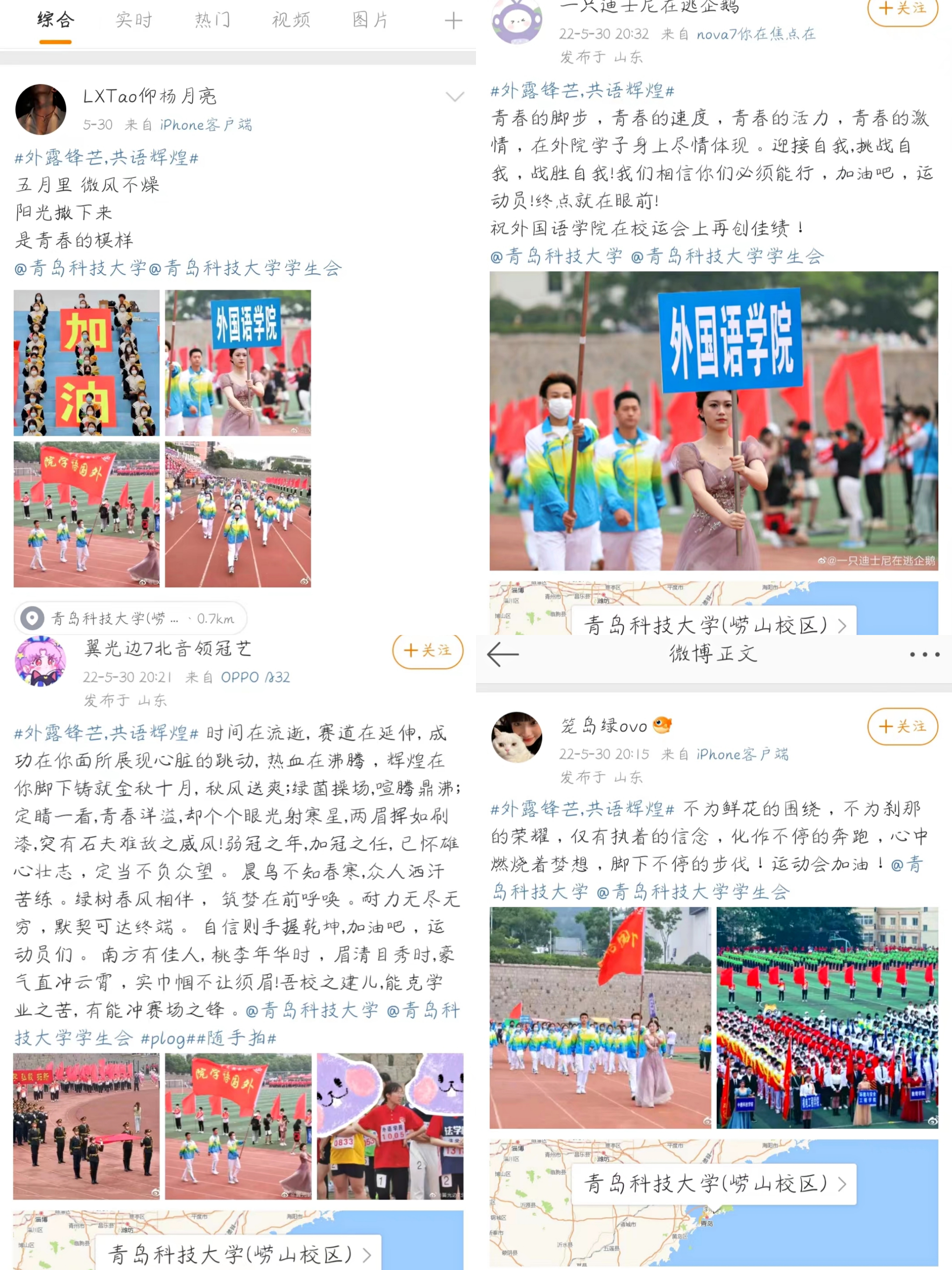 本年度的大学生心理健康月正值校运动会,为庆祝运动会的胜利召开,展现澳门信誉最好十大平台学子在运动会开幕式及各项竞赛中的精神风貌,澳门信誉最好十大平台学生会于5月29日组织举办了运动会期间微博打卡活动,广大外院学生积极参与。
