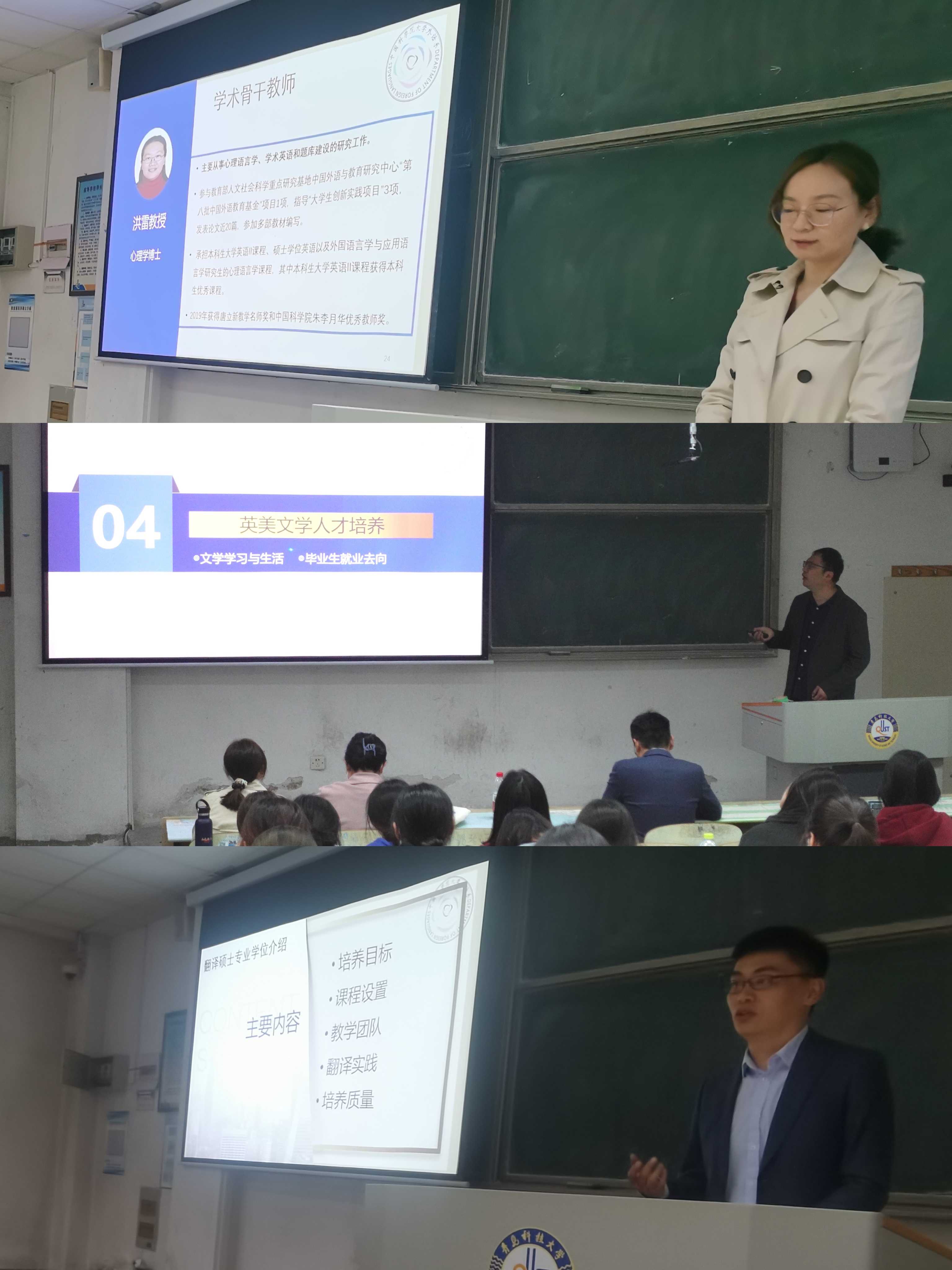 4月22日晚,中国科学院大学外语系一行莅临澳门信誉最好十大平台开展硕士招生宣讲活动。活动于弘毅楼B101教室举办,活动嘉宾有中国科学院大学外语系李晰老师、安帅老师、范嘉舜老师,以及澳门十大信誉网赌大全外语学院毕业生、国科大外语系在读硕士研究生金秋同学。活动由澳门信誉最好十大平台团委老师张湘钧主持,团委书记刘妍君参加活动。