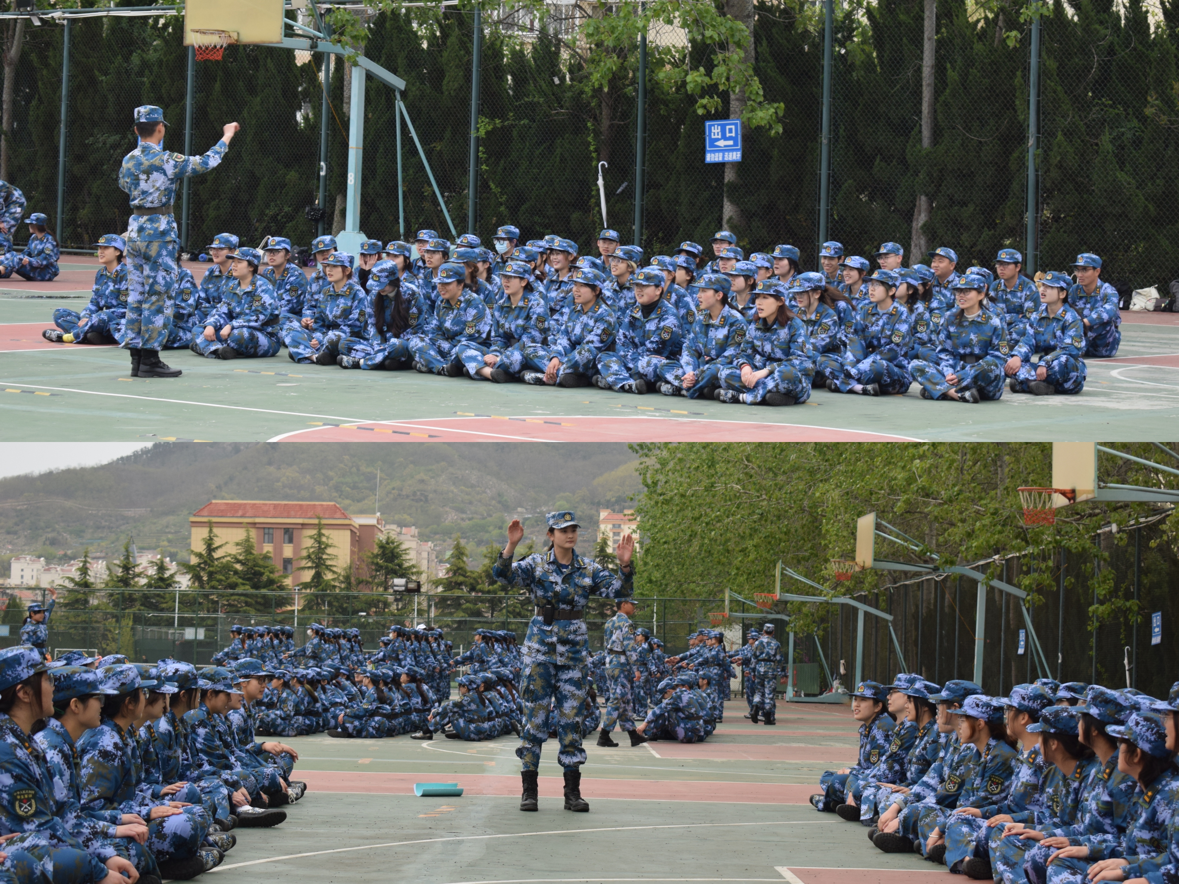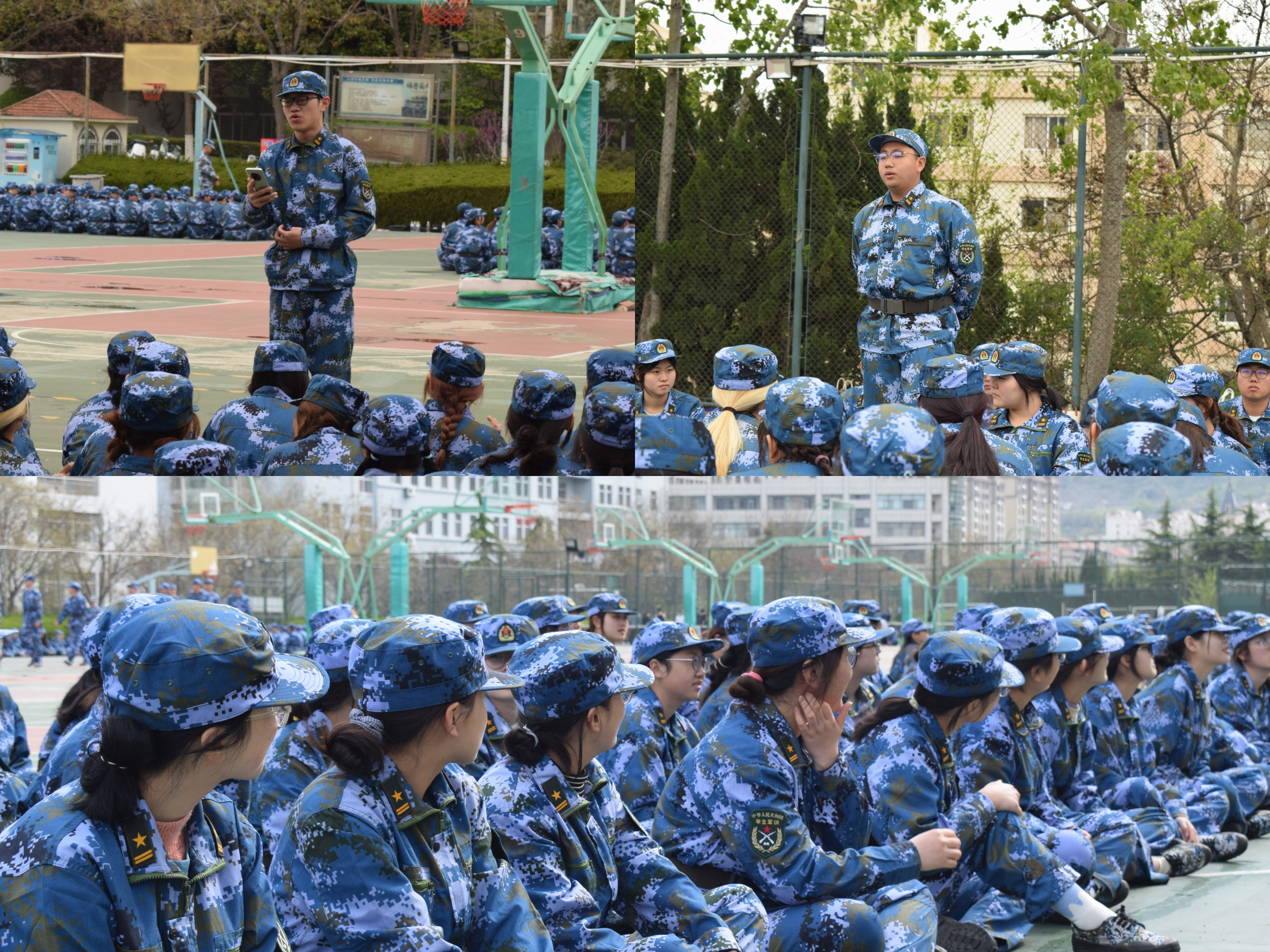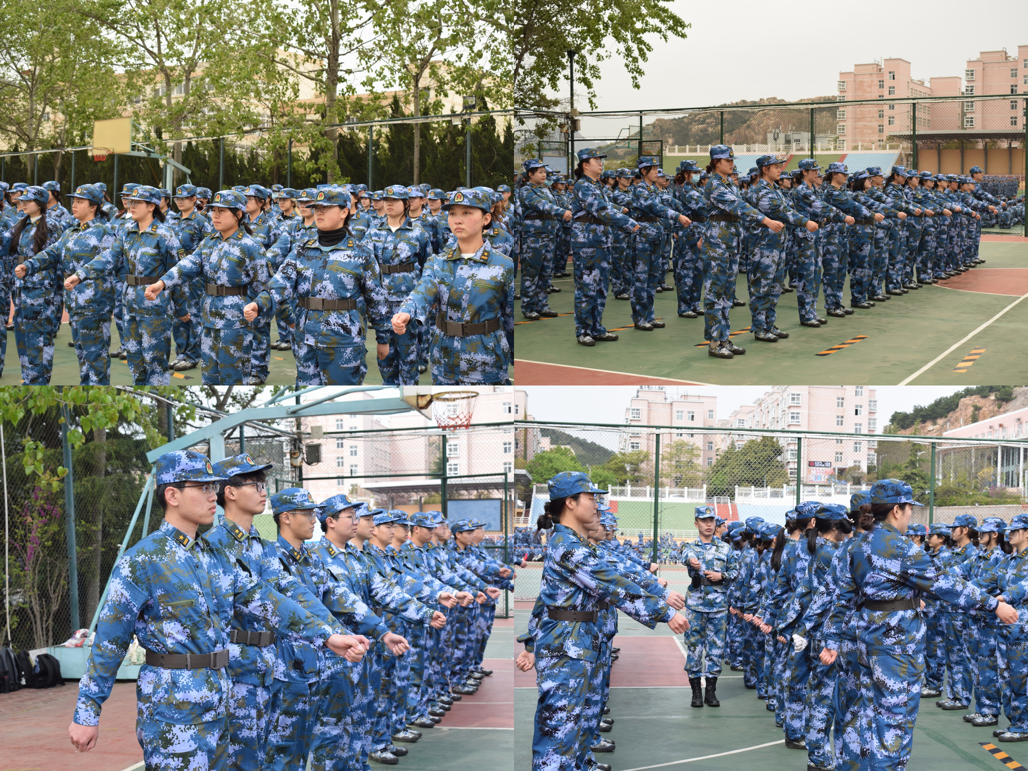 整齐划一的蓝色迷彩,意气风发的坚定步伐,在教官的口令声里,同学们认真完成着训练动作,一个个整齐的蓝色方阵成为校园中亮丽的风景线。