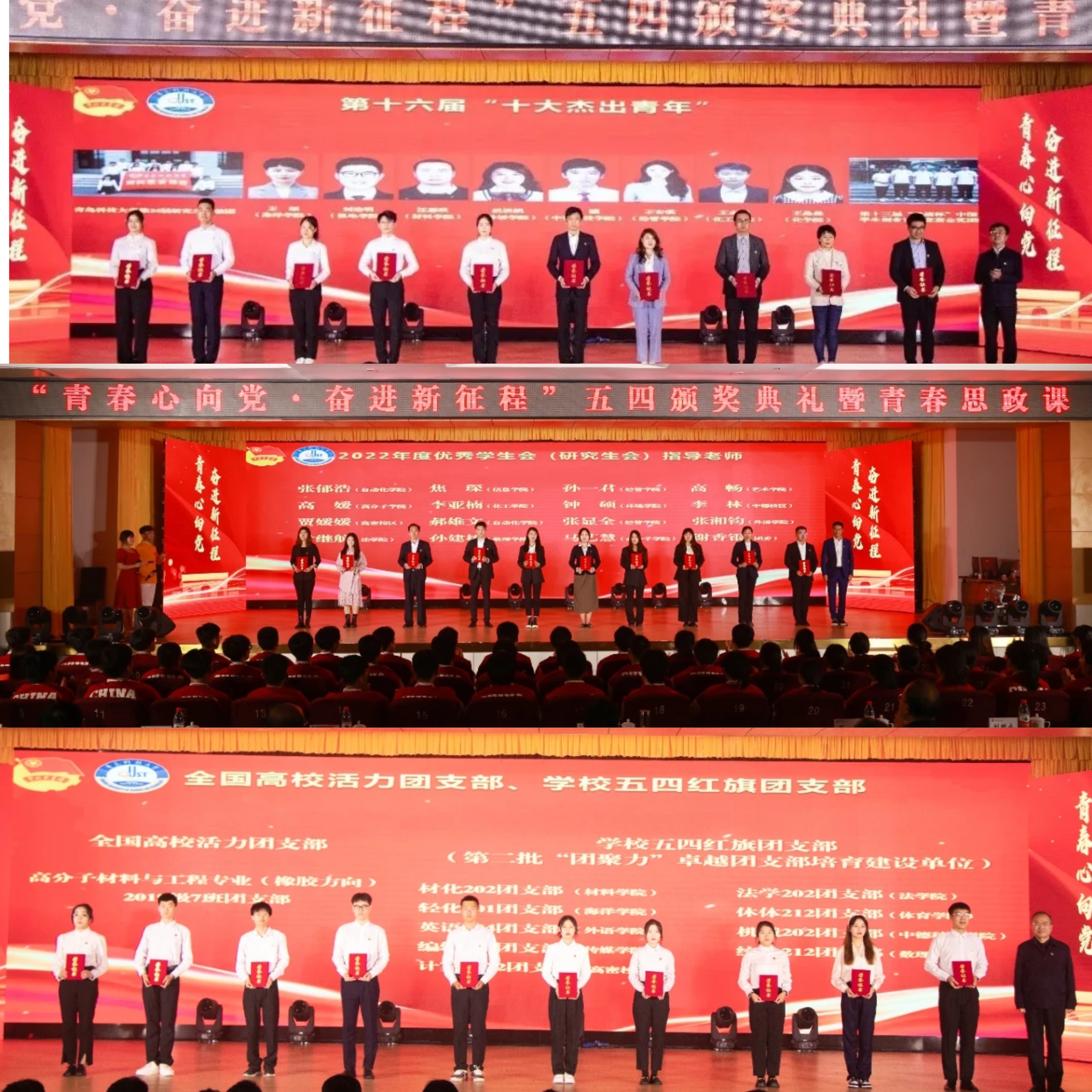 5月4日下午,崂山校区第二报告厅内举办了“青春心向党 奋进新征程”五四颁奖典礼暨青春思政课活动,活动分为颁奖典礼和主题课程展示两个部分。