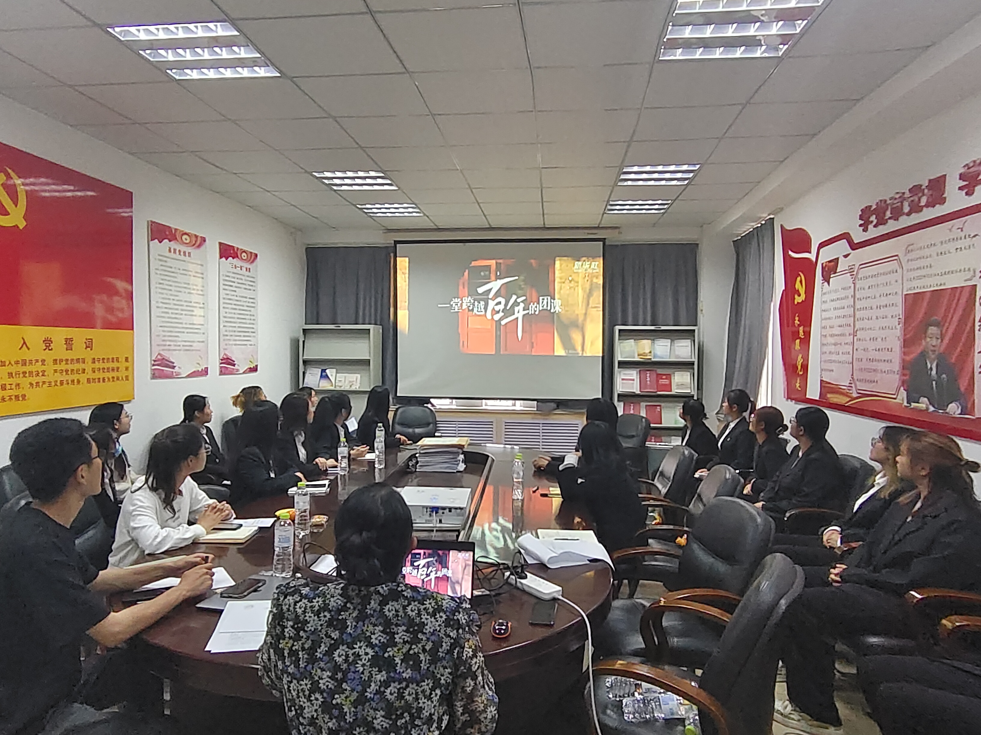 会议的开始,由团委书记刘妍君老师带领同学们一同学习“团徽耀青春,奋楫再出发”主题团课。刘老师介绍了共青团及其发展历史,中国共产主义青年团是中国共产党领导的先进青年的群团组织,是广大青年在实践中学习中国特色社会主义和共产主义的学校,是中国共产党的助手和后备军。《中国共产主义青年团章程》是中国共产主义青年团贯彻落实党的精神和领导的行动纲领。