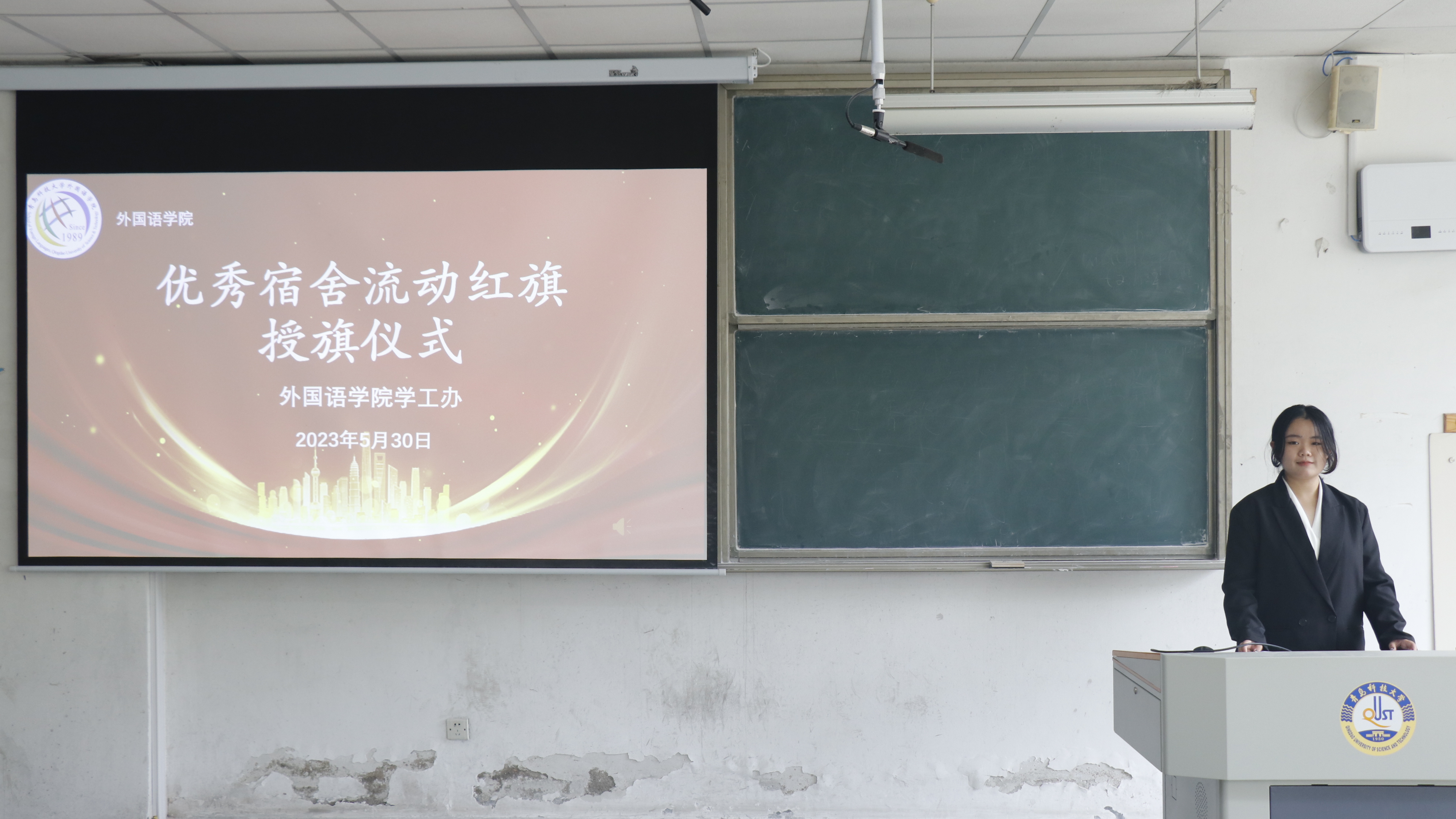 为营造文明和谐的寝室生活氛围和积极向上的学习氛围,帮助同学们养成良好的生活与学习习惯,5月30日下午,澳门信誉最好十大平台学工办于弘毅B101教室举行优秀宿舍流动红旗授旗仪式,出席本次活动的有学工办主任刘妍君老师、辅导员张湘钧老师以及各优秀宿舍代表。