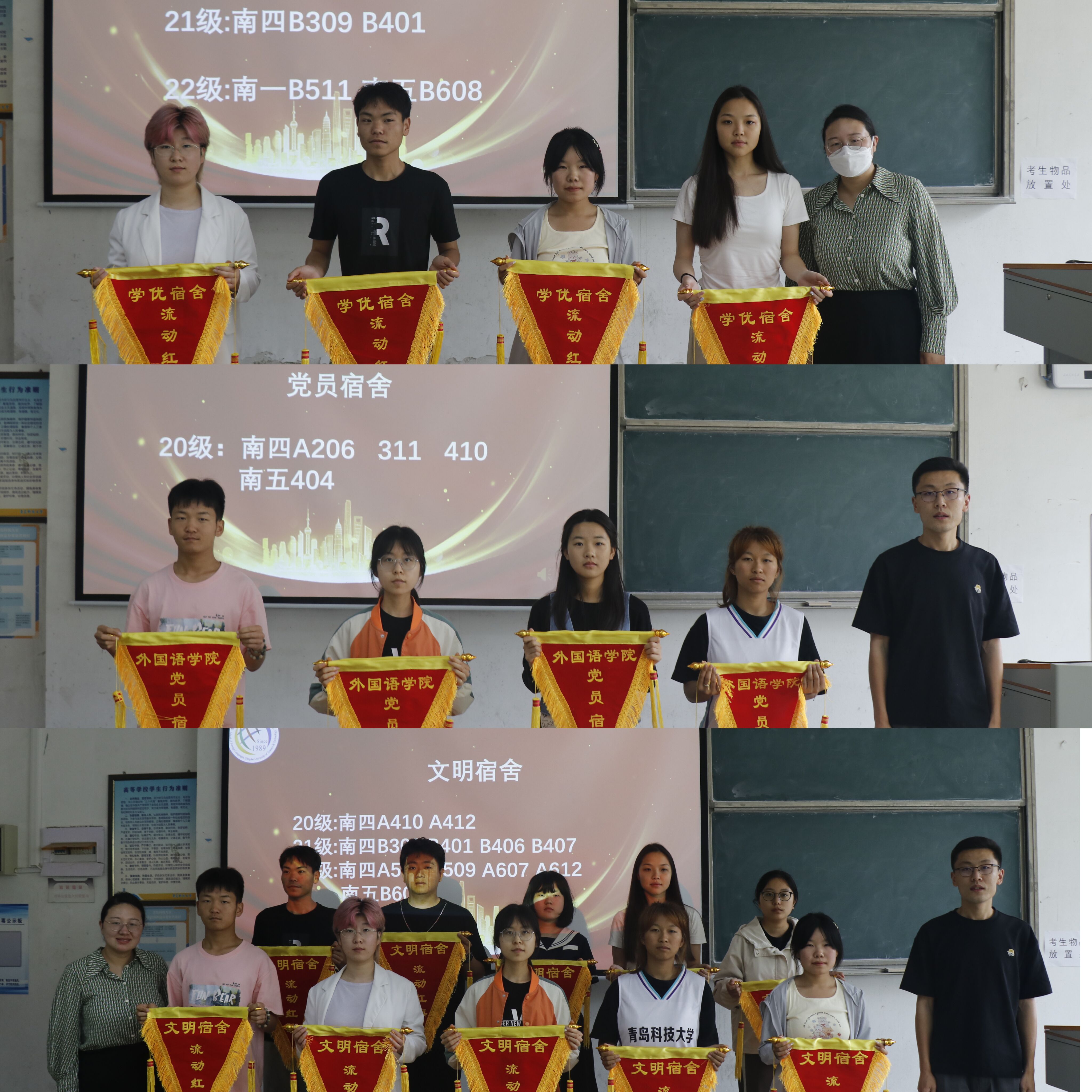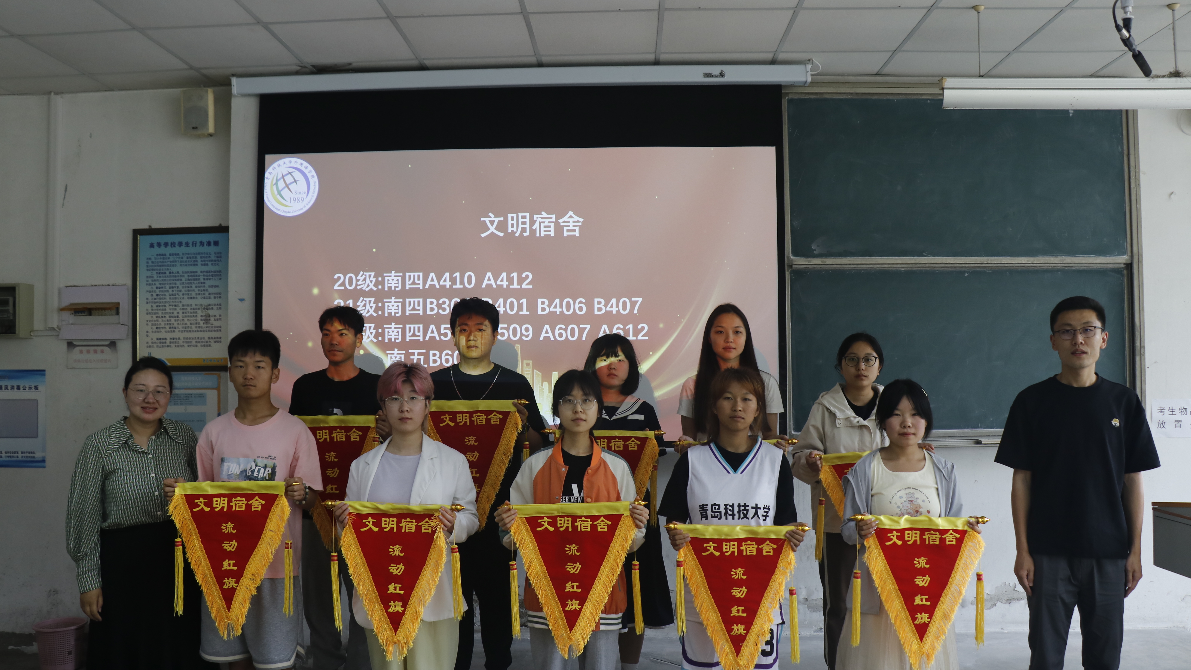 首先,澳门信誉最好十大平台学工办主任刘研君老师祝贺了获奖宿舍,强调了创建整洁文明宿舍环境的重要性,鼓励同学们营造良好的寝室文化氛围。随后,优秀宿舍学生代表宋安南做了分享,他表示良好的宿舍环境让我们心情舒畅,学习更加愉快。接下来,学工办两位老师分别为学优宿舍、党员宿舍、文明宿舍颁发锦旗。