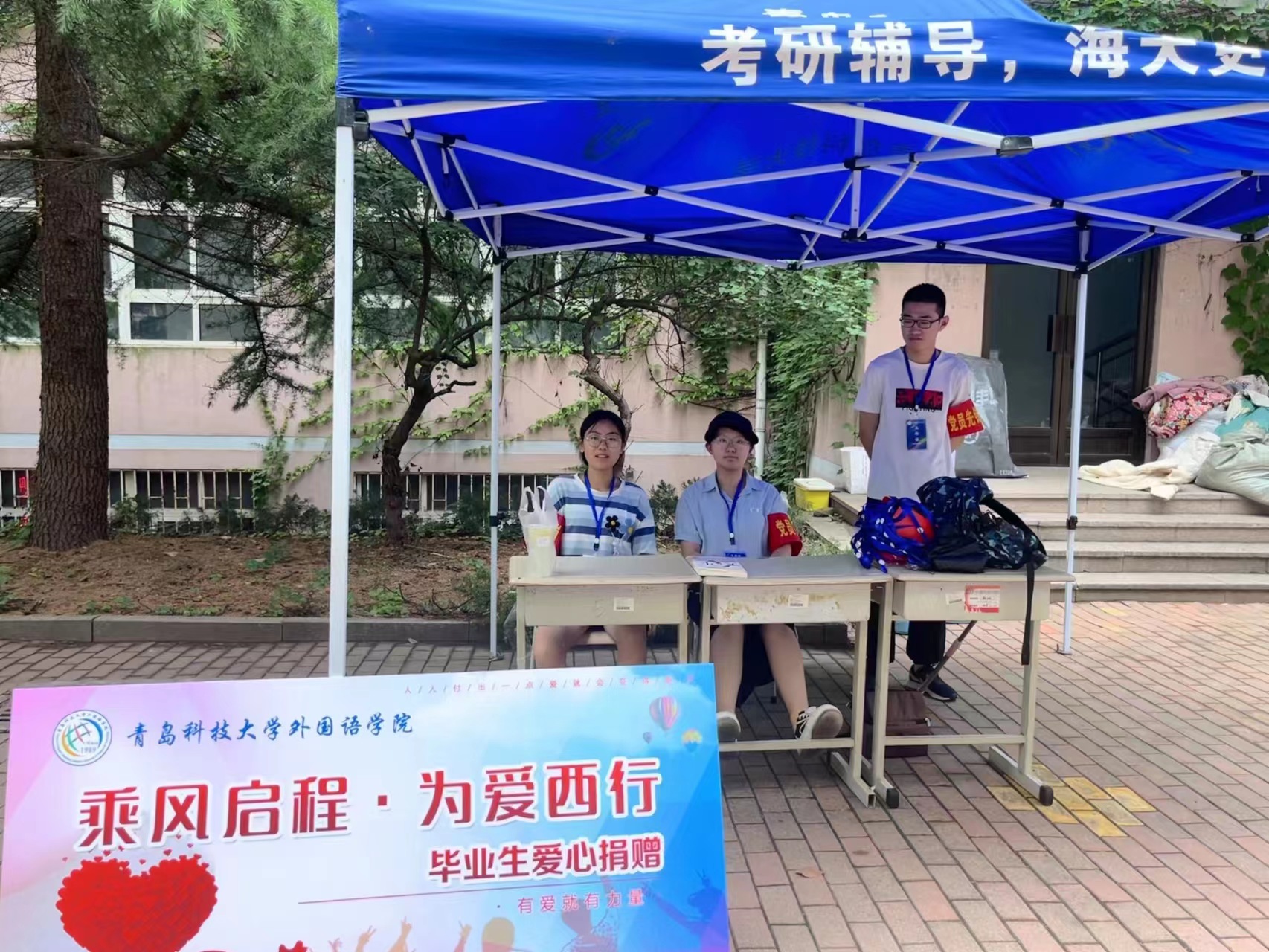 爱心捐赠,情谊相传。学院在学生宿舍楼下设置了“乘风启程·为爱西行”毕业生爱心捐赠点,倡导毕业生们将书籍、学习用品等捐赠出来,同时吸引毕业生投身西部,加入服务西部的队伍中去。捐赠点的桌子很快被各种书籍、台灯、文具等爱心捐赠品堆满,它们不仅传递了毕业生的爱心,更展现了学校、学院以及学生们对西部教育事业的支持。