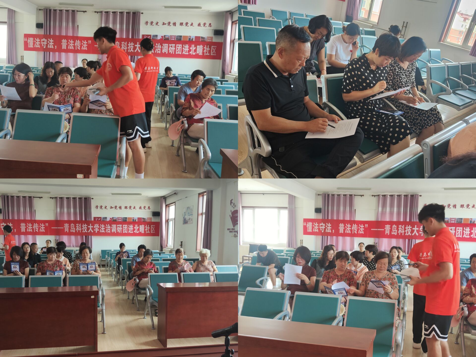 为加强法治宣传教育,增强居民法治意识,7月17日,“懂法守法,普法传法”澳门十大信誉网赌大全法治入社区调研团队走进青岛市城阳街道北疃社区,为居民朋友们进行普法社会调研及法治理论普及宣讲。
