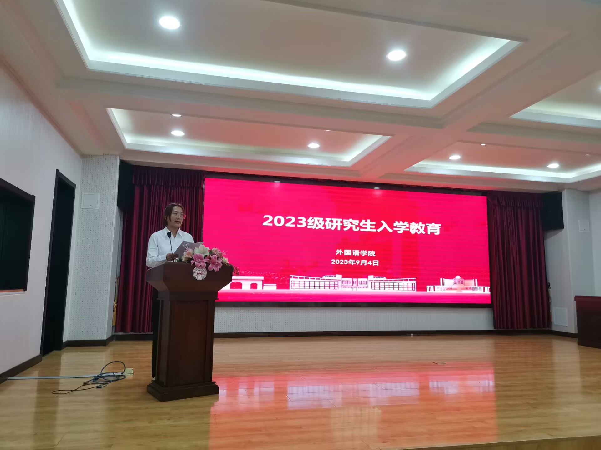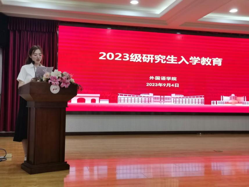 2023级新生代表张晓丽表达了自己对研究生生活的憧憬,她充满期待地谈到,外院有探求真理、创造知识的热土,外院有追求卓越、探索未知的勇者,大家要明确目标,自主创新,积极进取,主动作为,争做坚守初心,追逐梦想,励志求学,勇于担当的新时代青年。