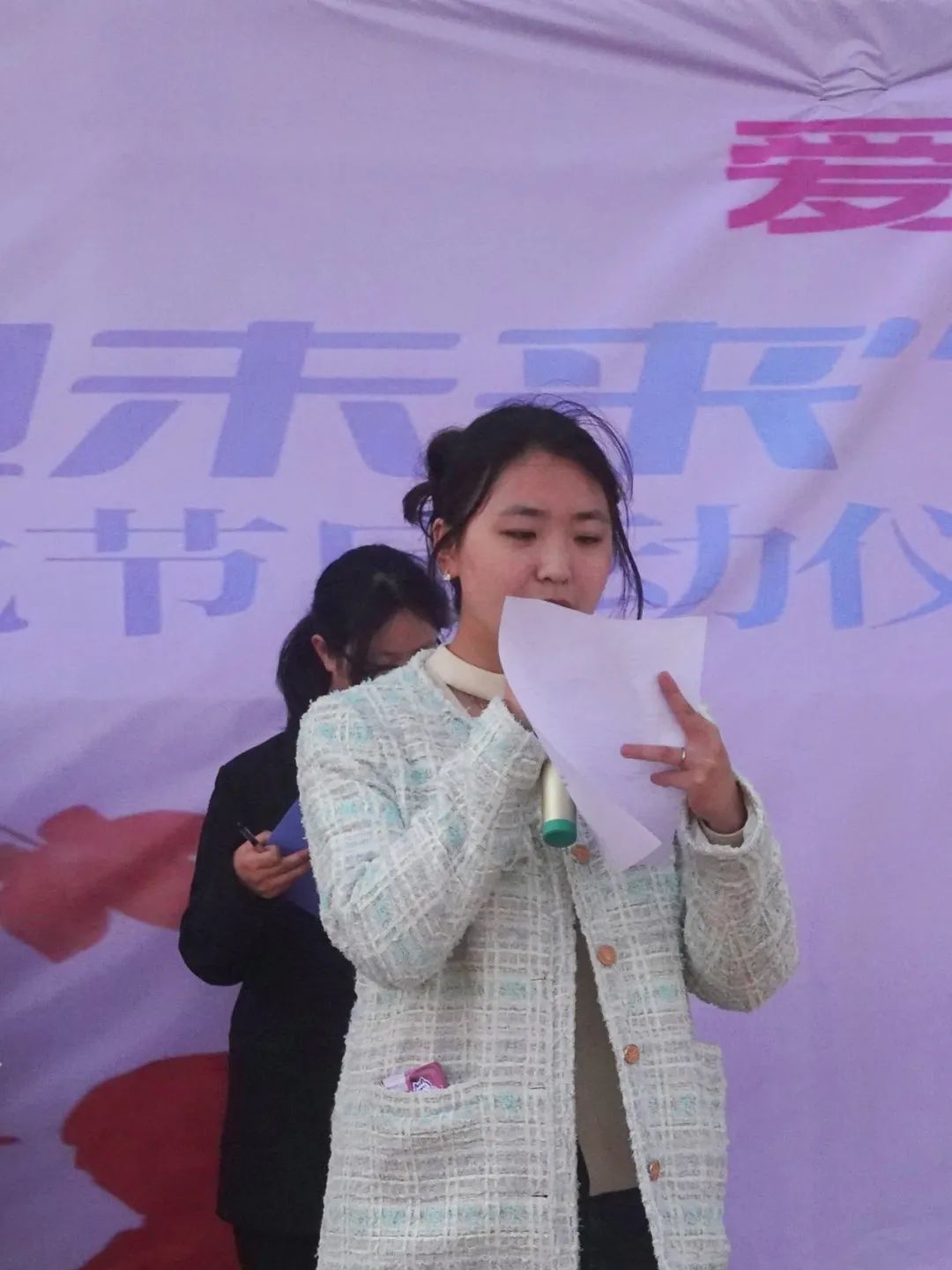 学生代表韩语221李瑞雯在启动仪式中进行发言,她从学生角度提出体育运动不仅是锻炼身体的手段,也是塑造品格、锻炼意志的重要途径。她以自身为例,阐明了在参加体育活动增强体魄的同时学会了团队合作,感受到了运动的快乐和力量。因此,她很感谢也很珍惜学院组织的各项体育活动,使她获益匪浅。
