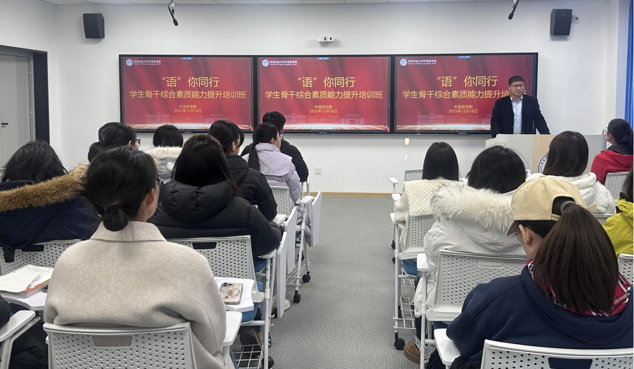 为进一步加强学生骨干队伍建设,提升学生骨干的综合素质、服务意识和工作能力,充分发挥其示范引领和桥梁纽带作用,12月16日,澳门信誉最好十大平台举办“语”你同行学生骨干综合素质能力培训会,学院党委副书记兼副院长马寒、全体辅导员及主要学生骨干参加本次活动。